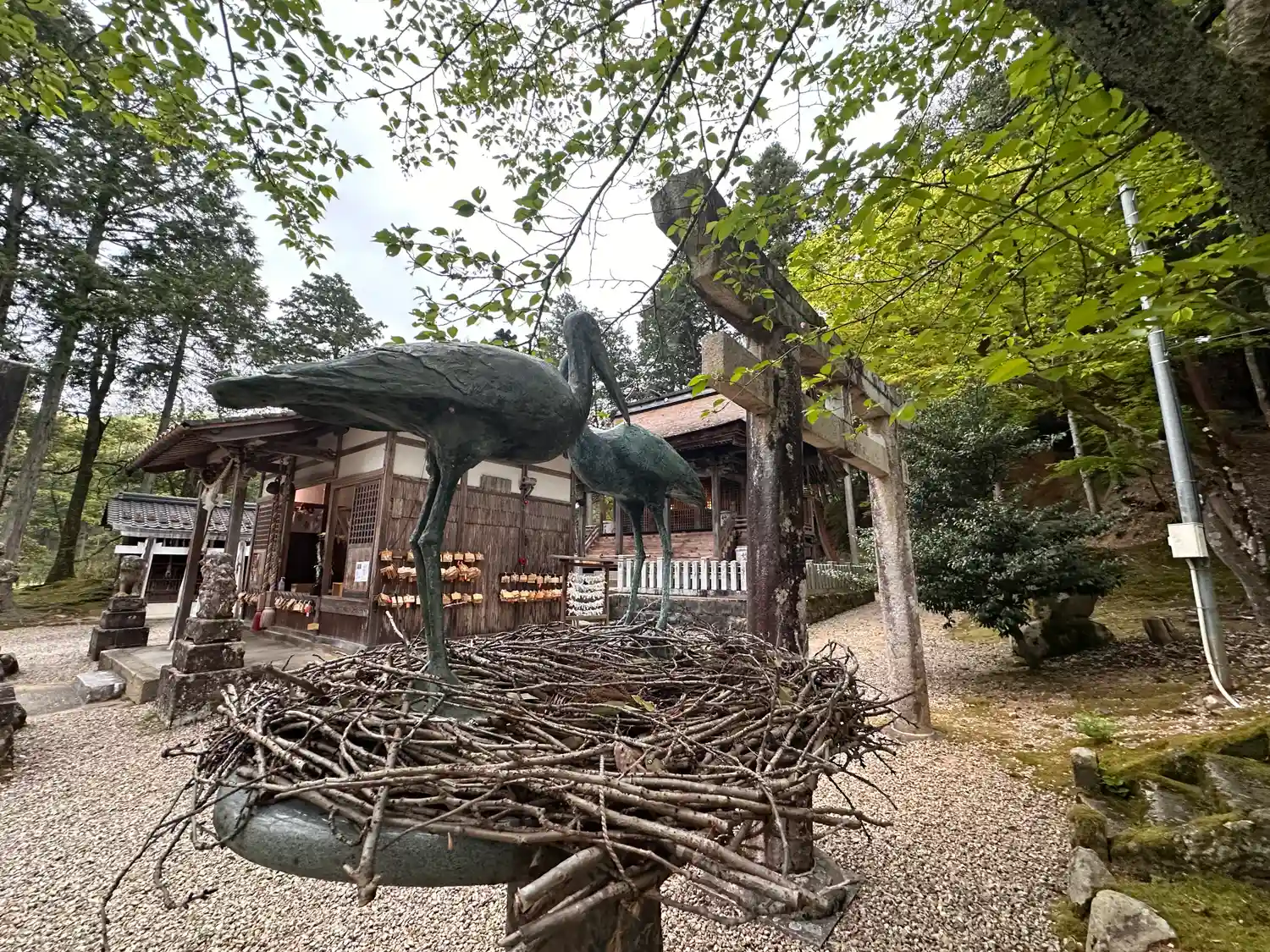 摂社横にはコウノトリの銅像がありました🙂