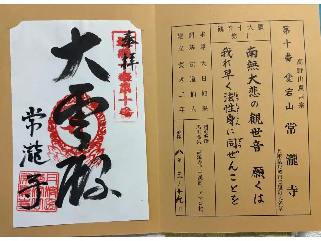 兵庫県丹波市青垣にある常瀧寺に訪問。