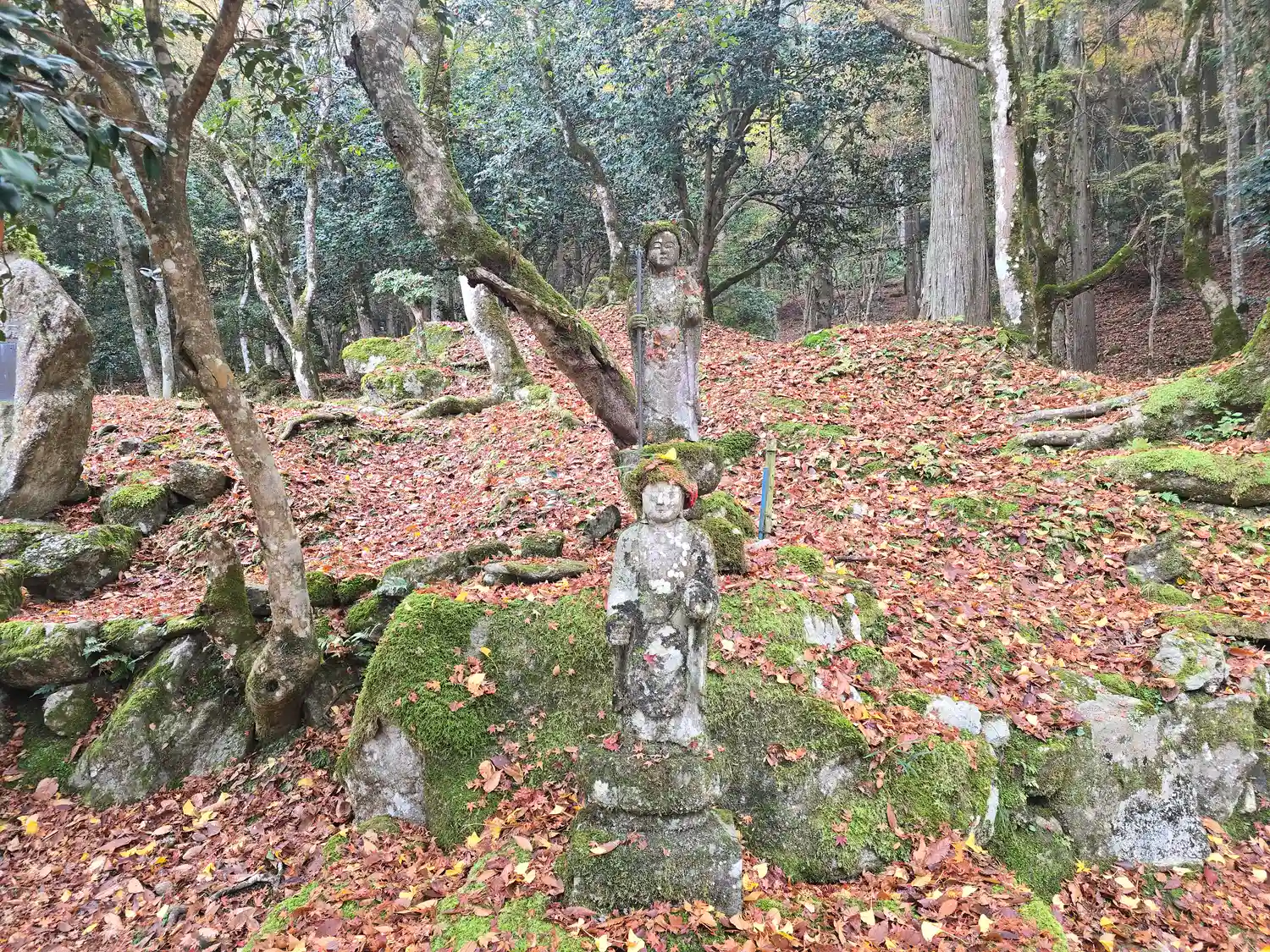 惣門をくぐるとゆるやかな石段が続き、天目カエデや山もみじに包まれています。