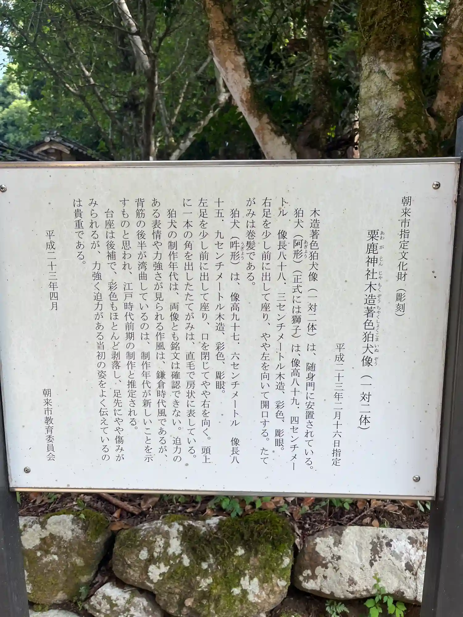 粟鹿(あわが)神社〜随身門の木造狛犬①阿像 朝来市指定文化財