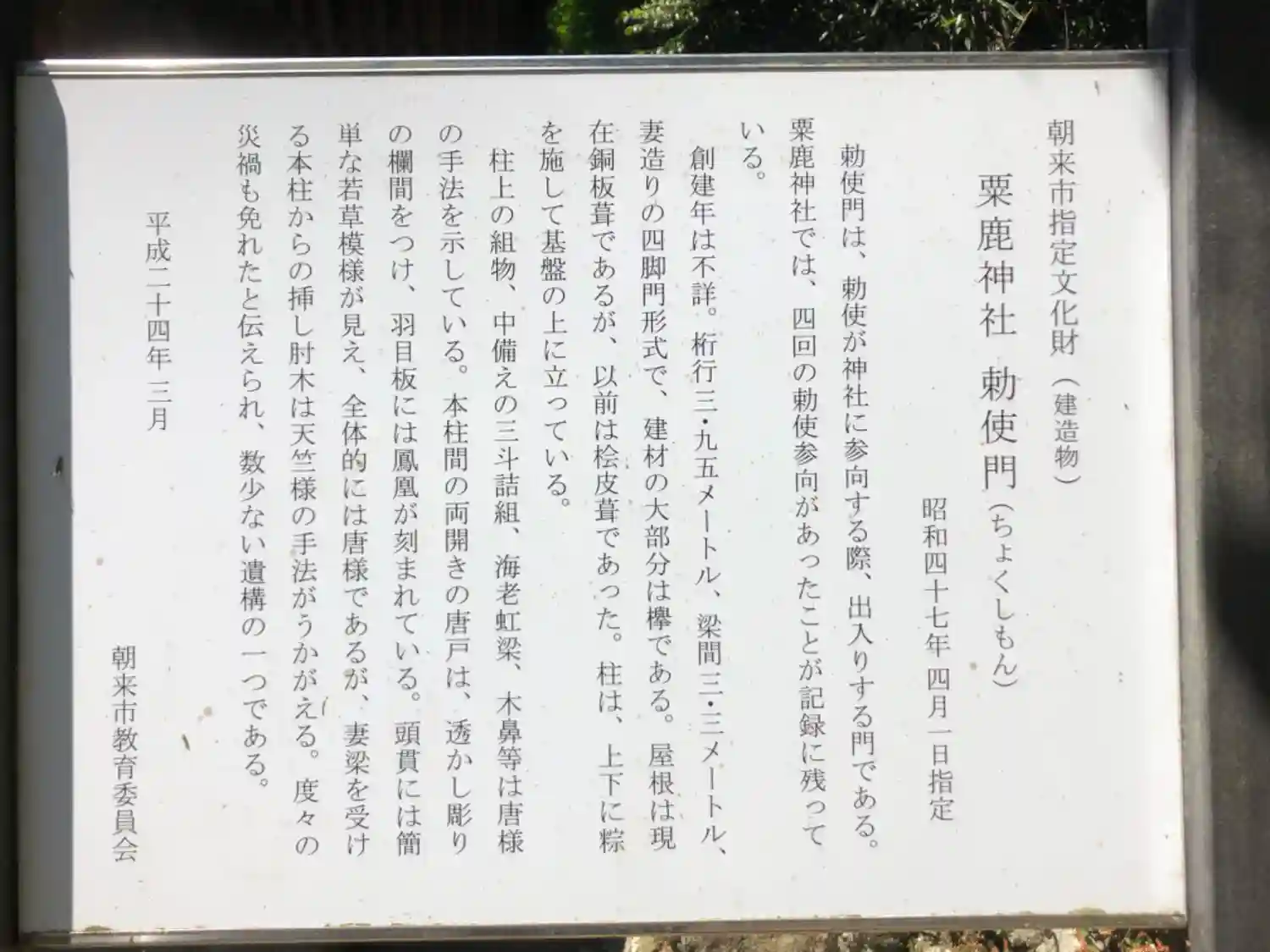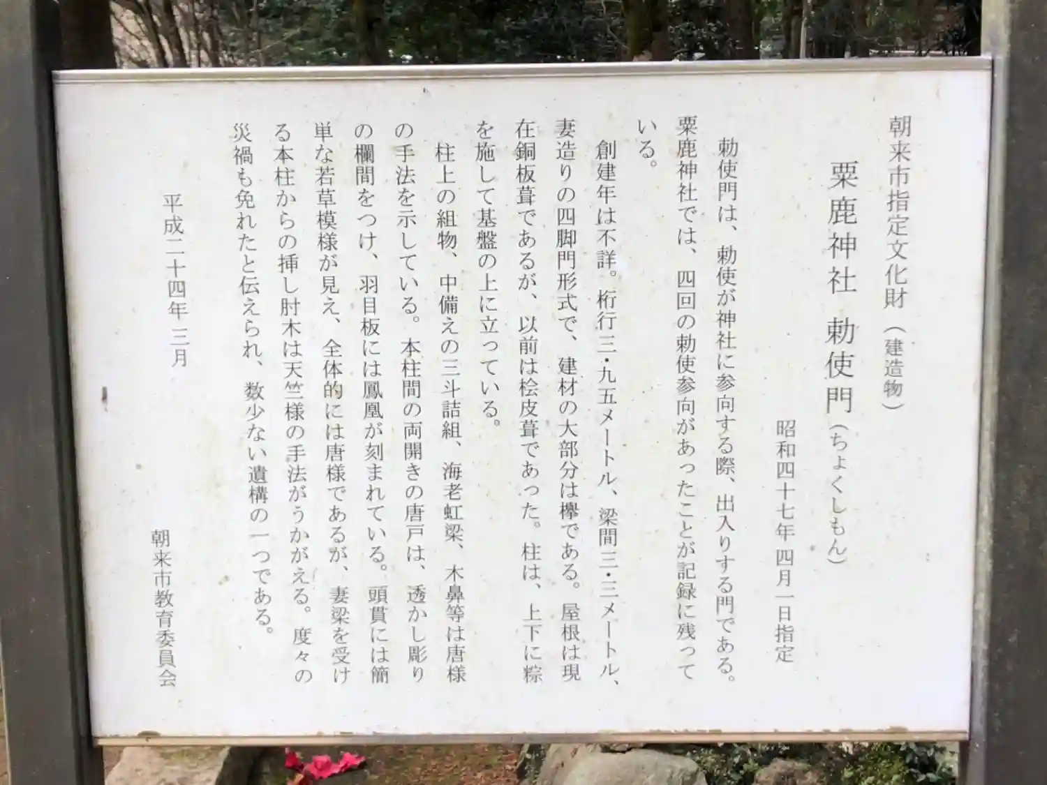 勅使門由緒書き