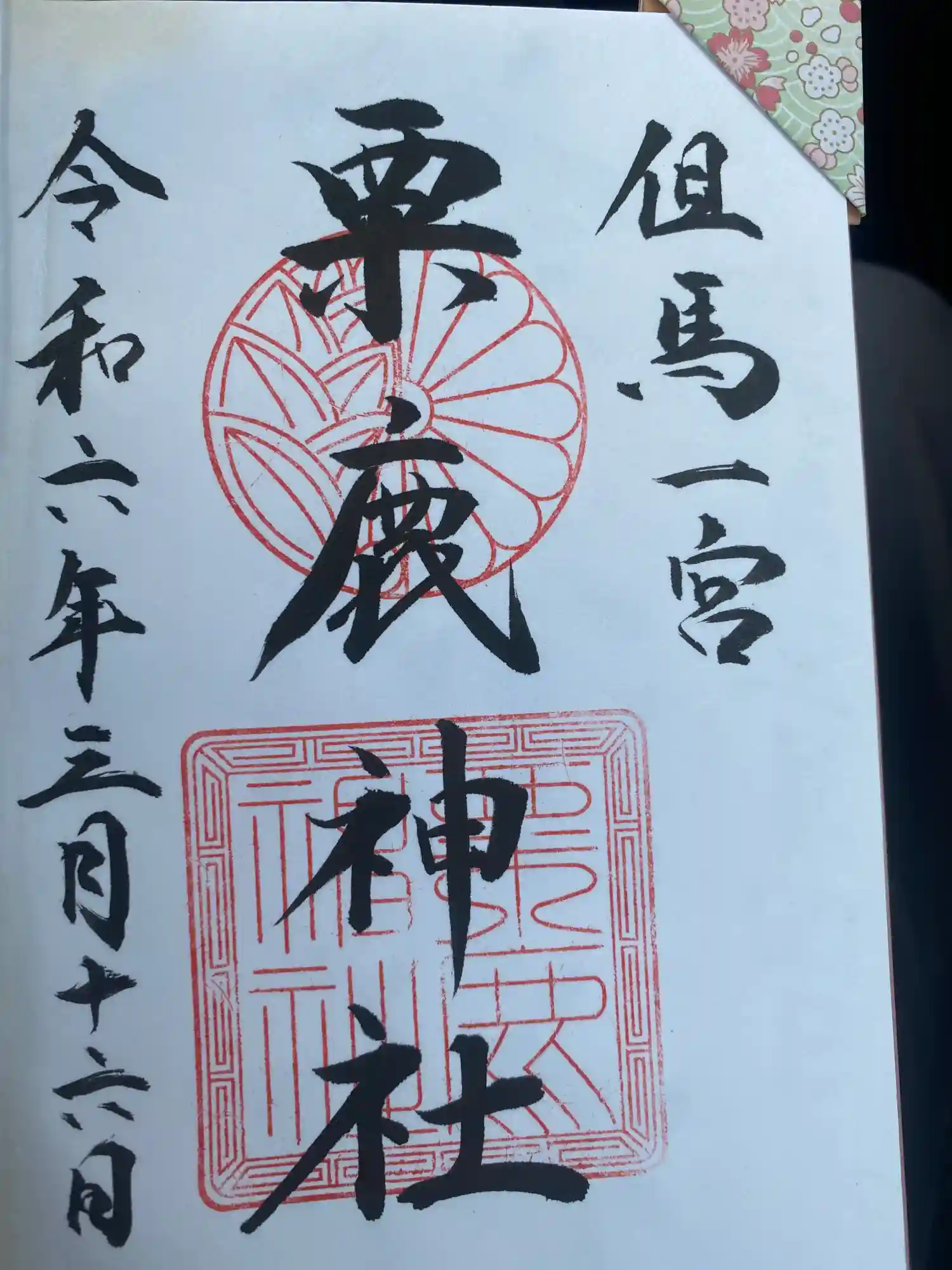 但馬国一宮の御朱印を神社前の宮司さん宅で頂きました。