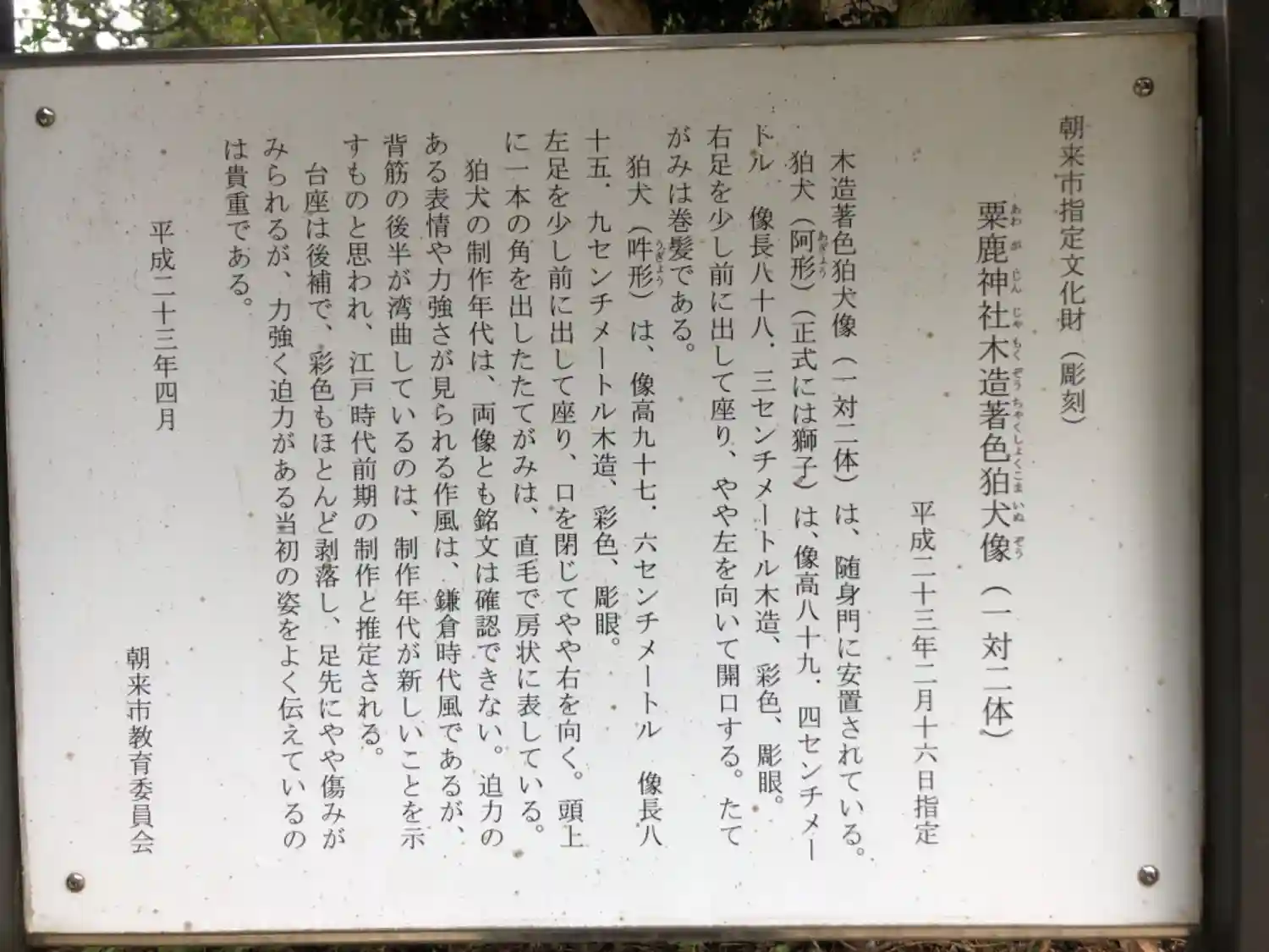 随神門内側に鎮座する狛犬についての由緒書き