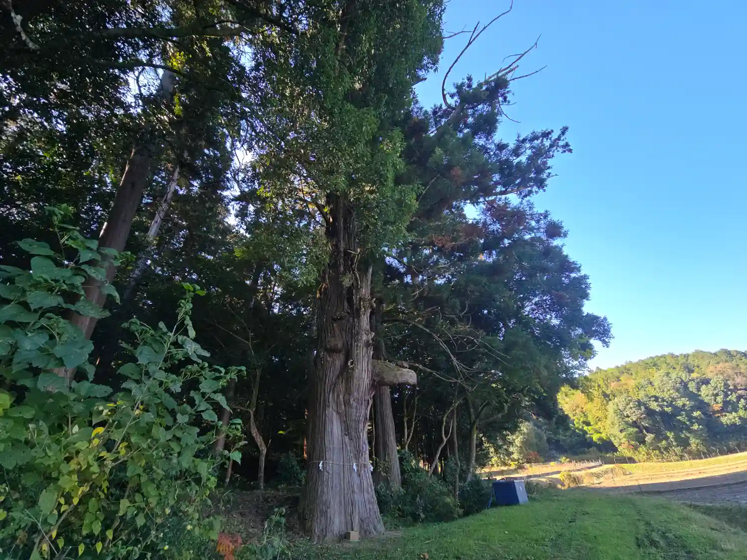幹回り6mのご神木。駐車場から50m