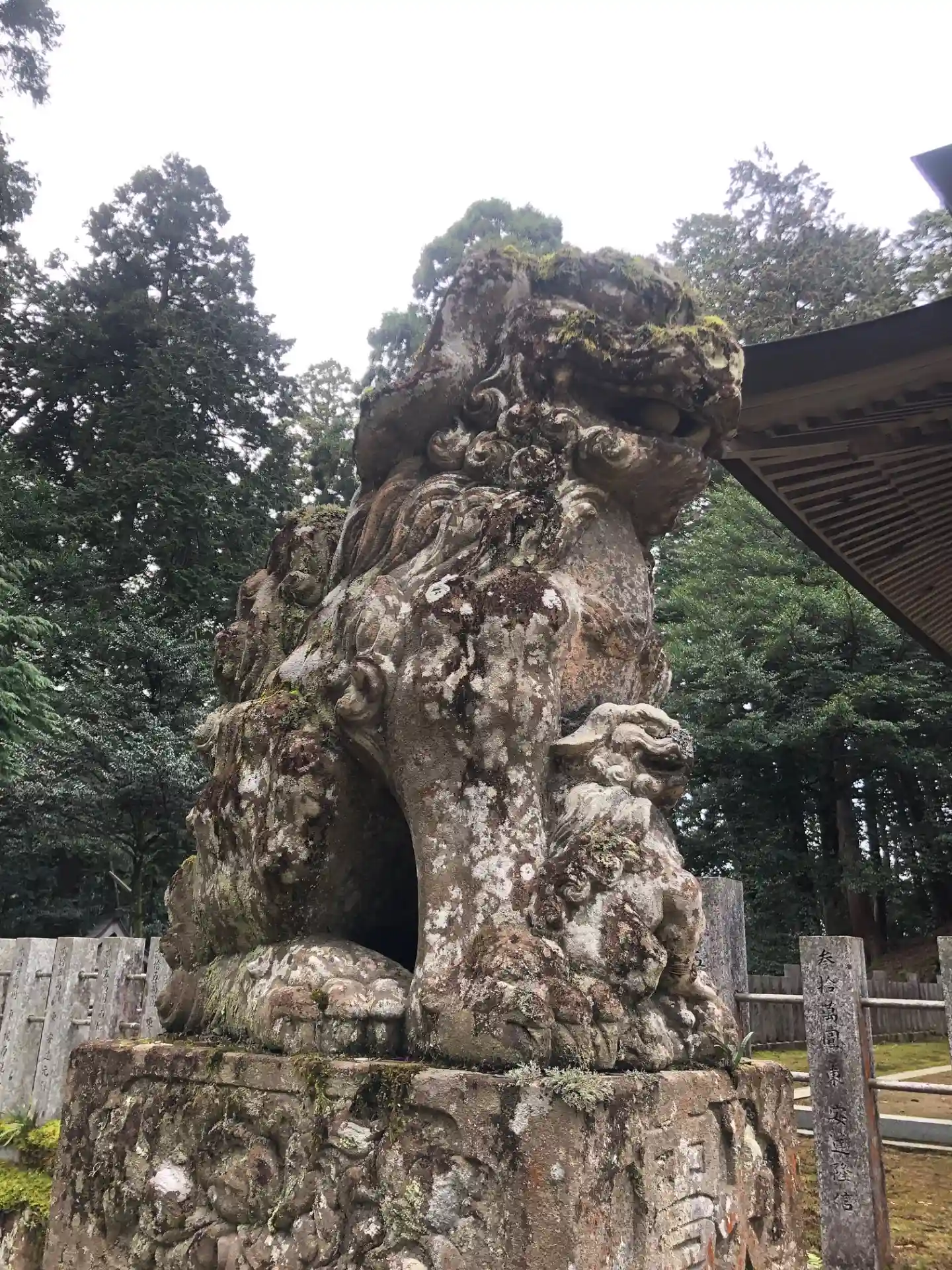 粟鹿(あわが)神社〜拝殿前の狛犬②吽像 仔犬あり 歴史を感じさせる