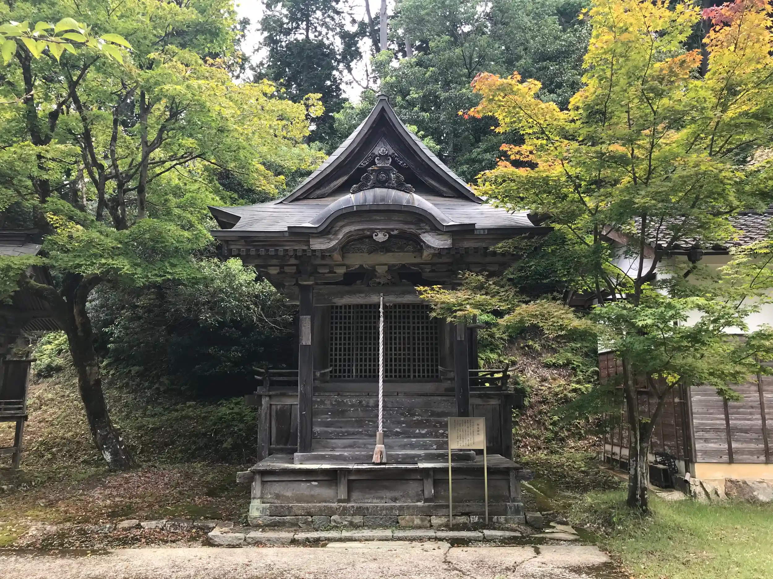 境内の御霊神社はかつての本殿を移築したもので、現在の本殿は江戸時代末期に建てられたものである。