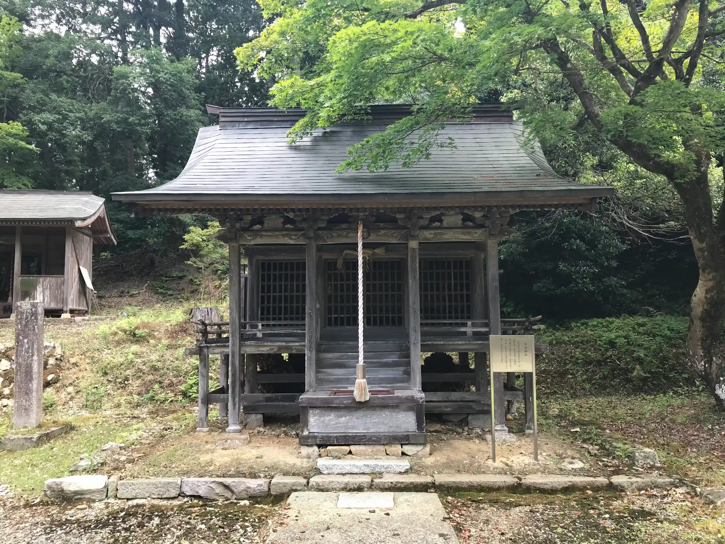 かつては弥高山山頂に上社、中腹に中社、現在地に下社が置かれていたが明治時代初期に社殿が下社に統合されている。