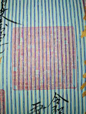 金文字は般若心経秘鍵より抜粋した一句で、見づらいですが中央に般若心経の朱印が押印されております。