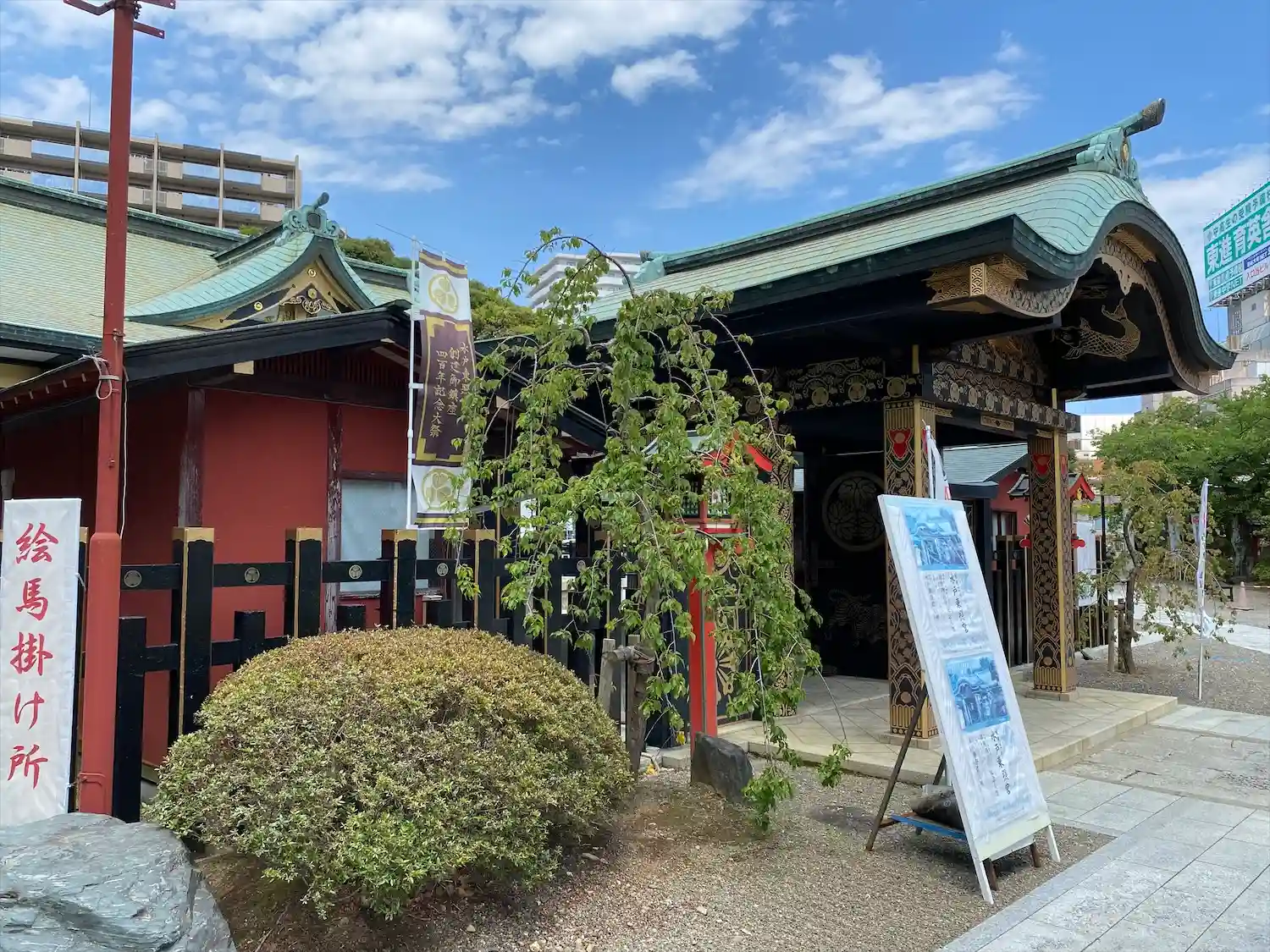 予想を裏切ること無く、派手な社殿でした。水戸駅から程近くの高台に鎮座。一の鳥居横にコインパーキング…