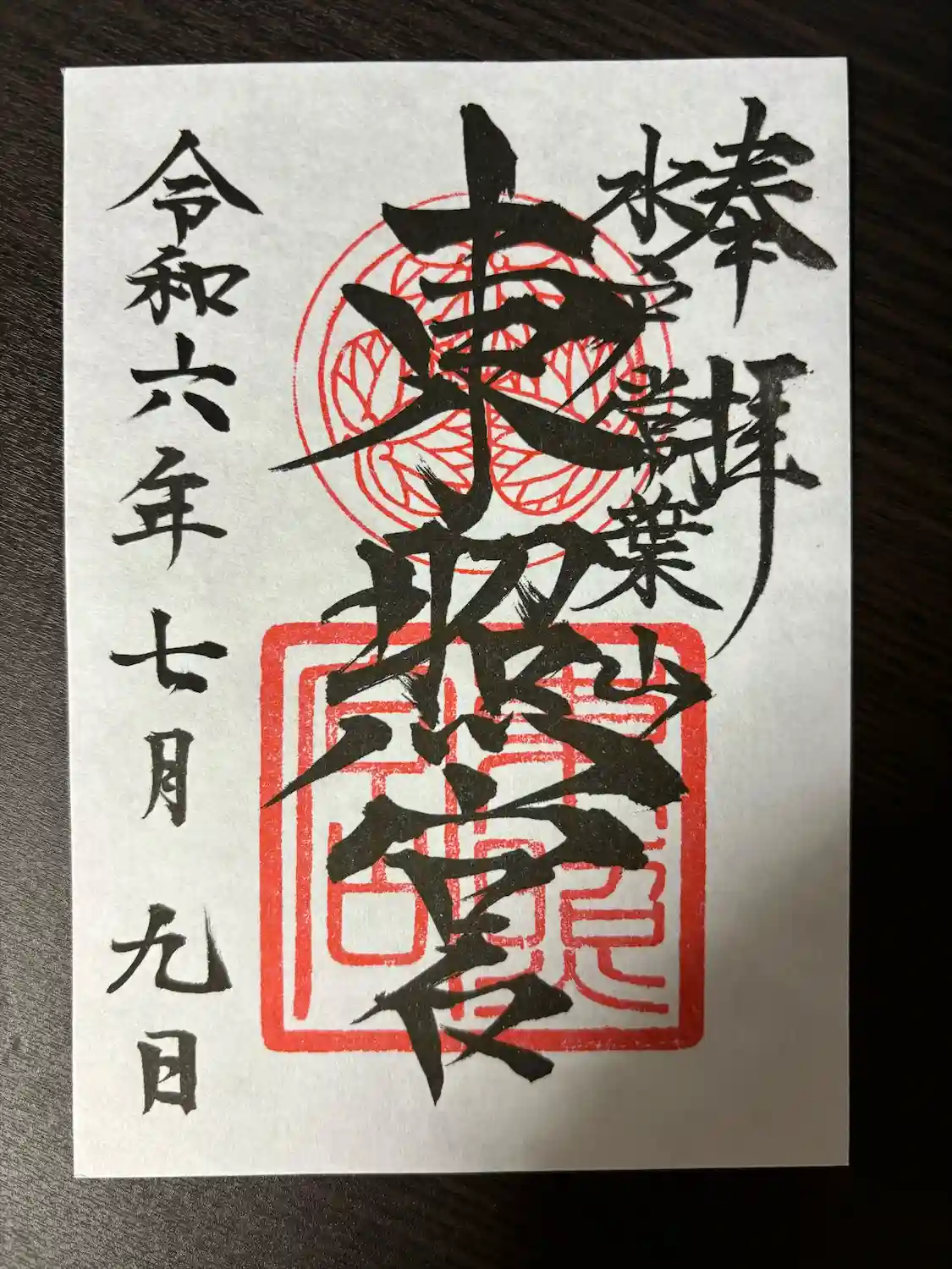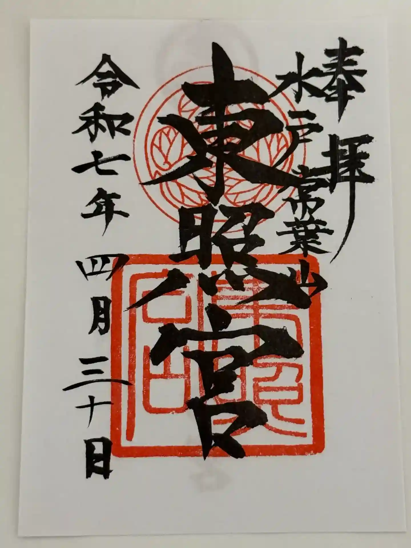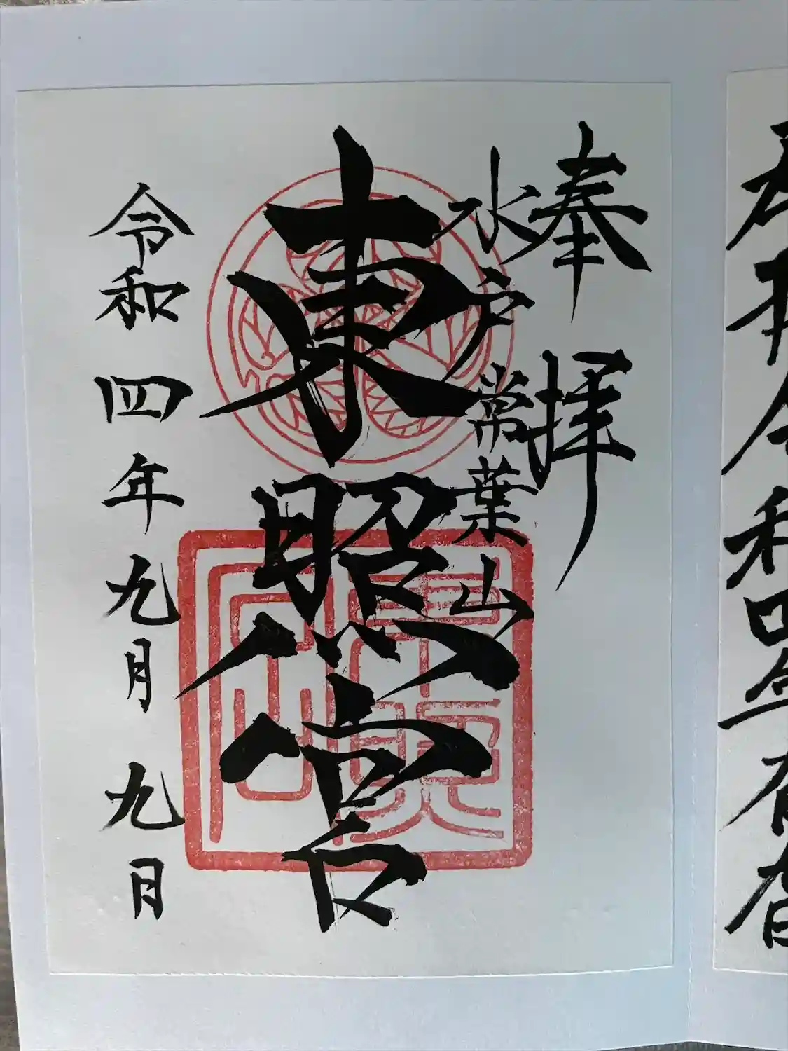 東照宮の御朱印書き置きです。
