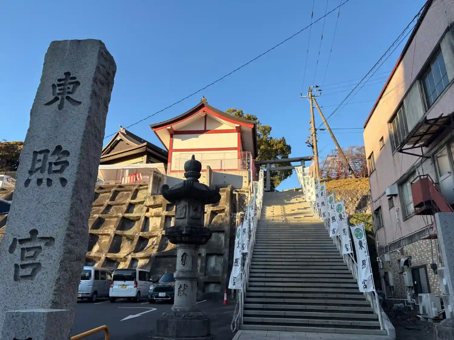 JR水戸駅北口すぐ近くの繁華街にある東照宮です。車は無料駐車場あ…