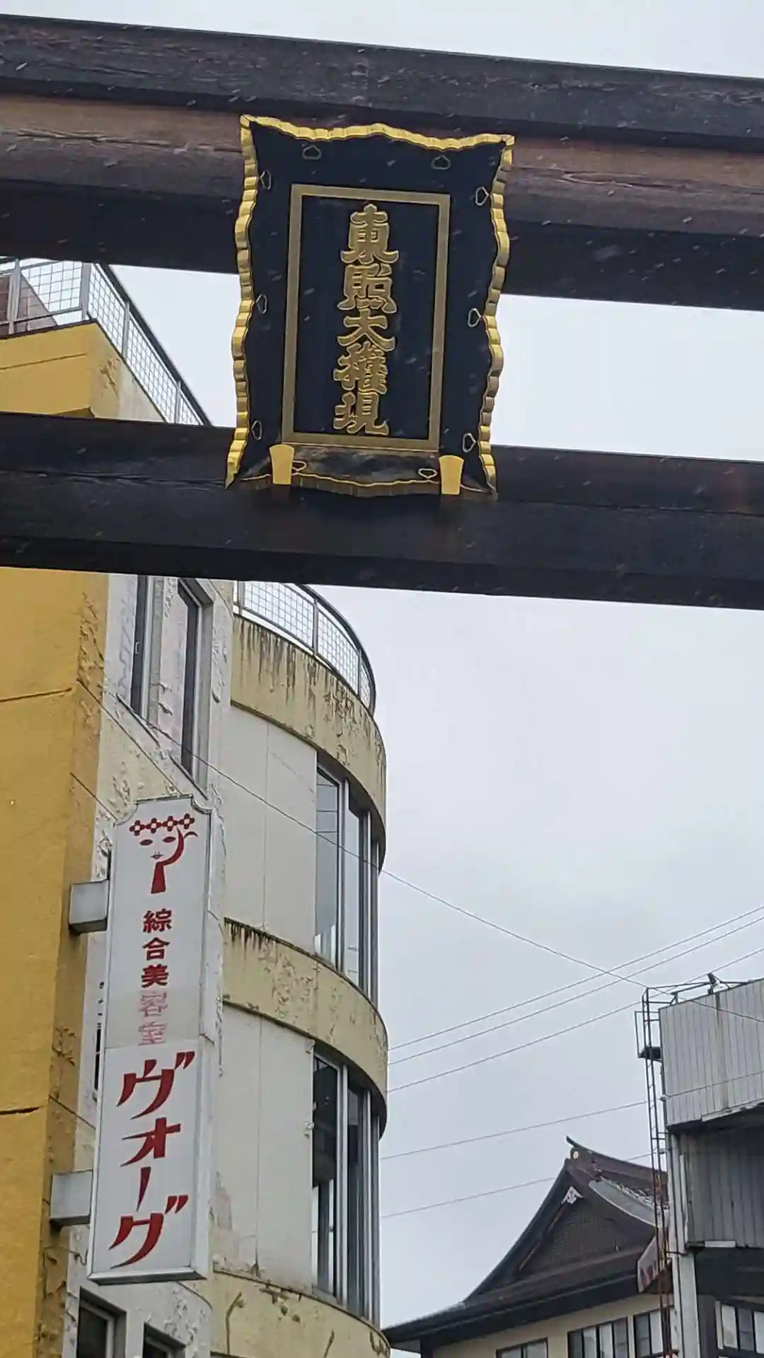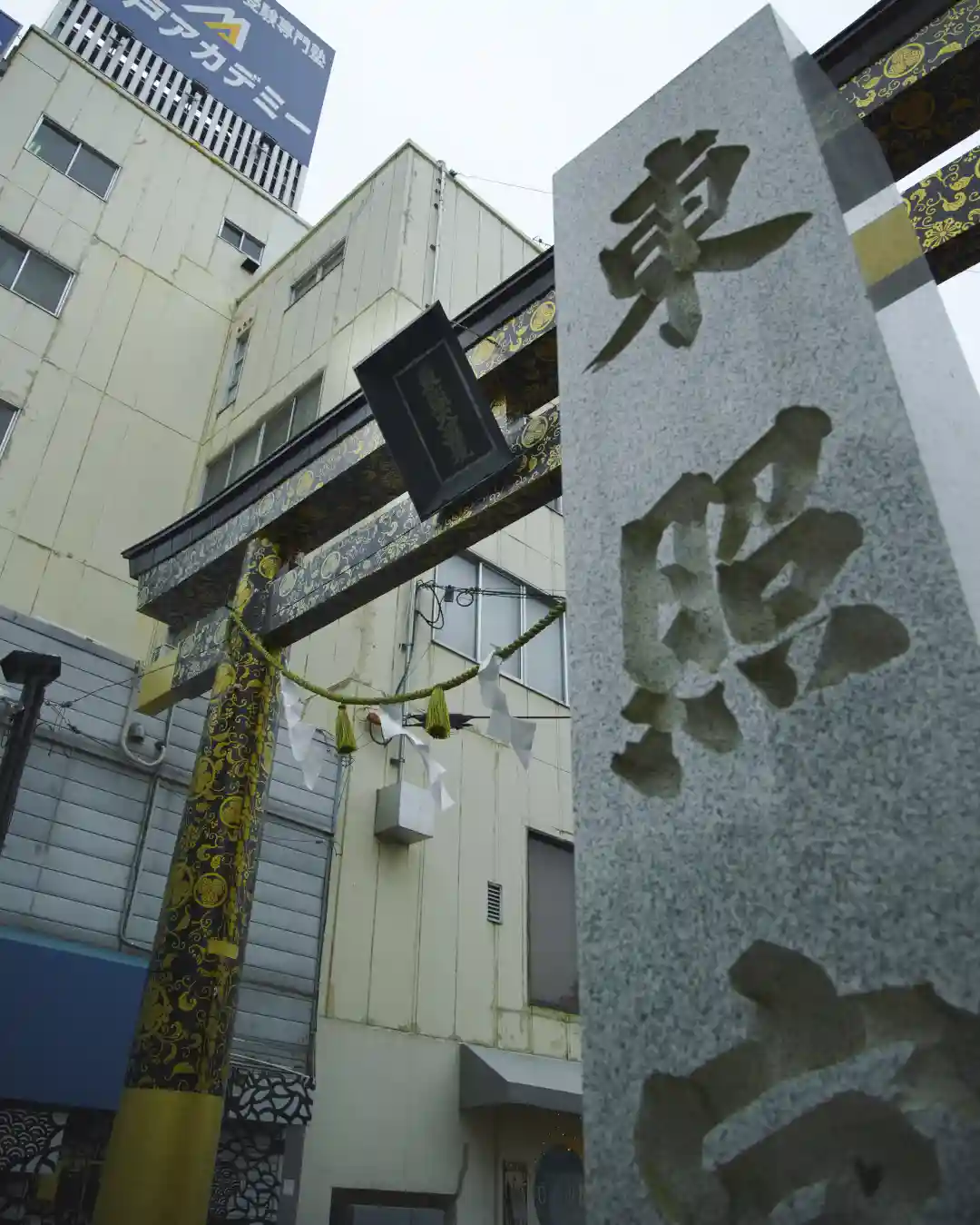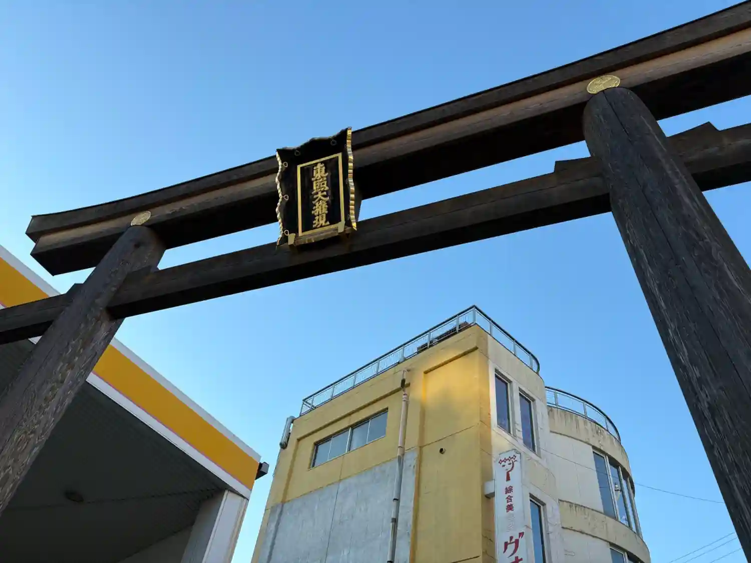 水戸駅前の大通りをすこし歩くと目に入る、豪華な鳥居。