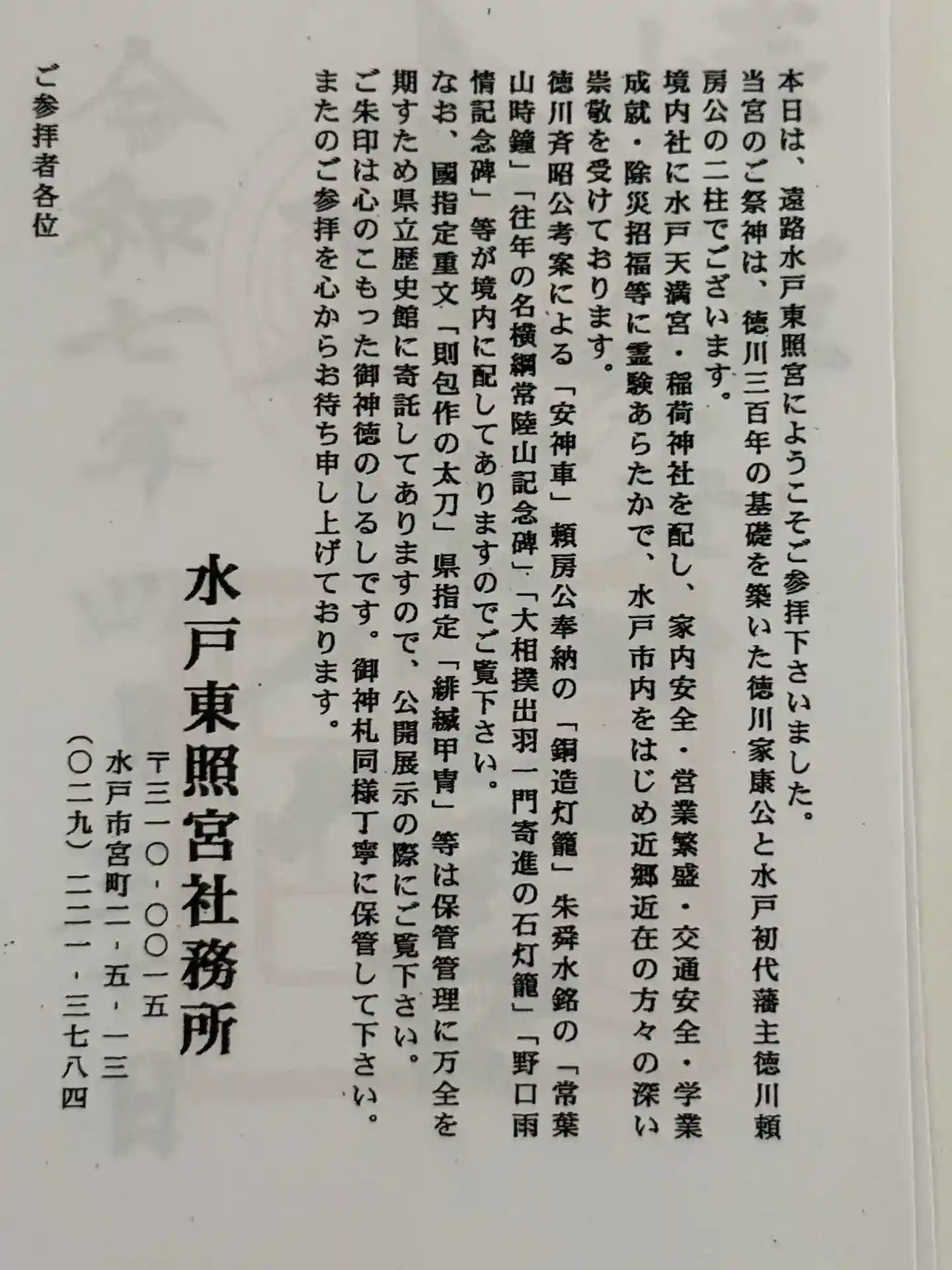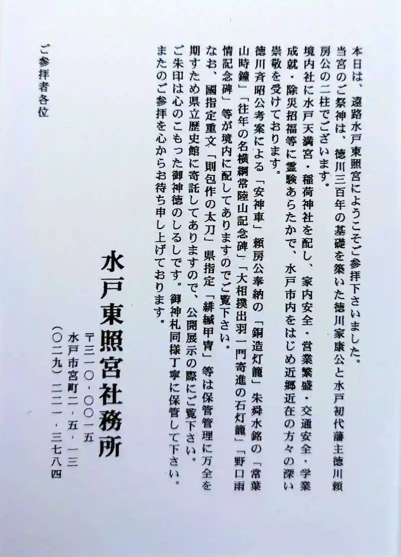 主祭神:徳川家康公 徳川頼房公