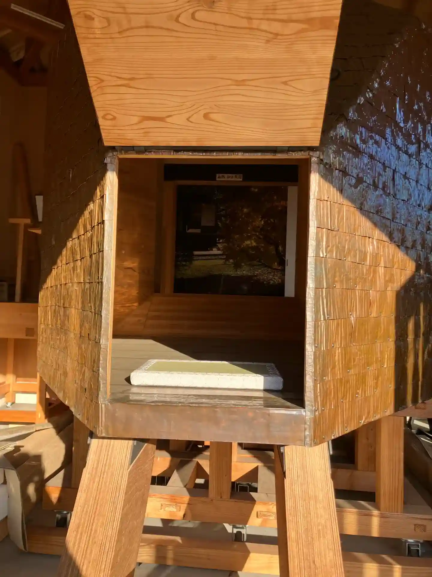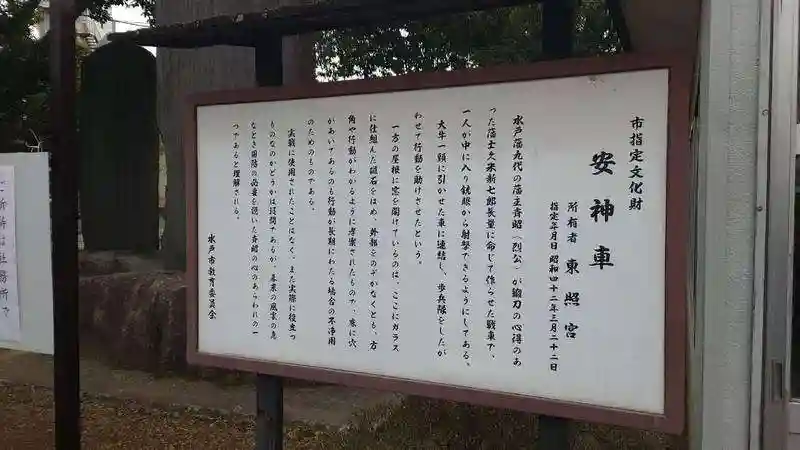 斉昭公の安神車に着想を得て、建築家の藤森照信さんが設計した現代アート作品です。水戸芸術館での展示後、水戸東照宮に寄進されました。