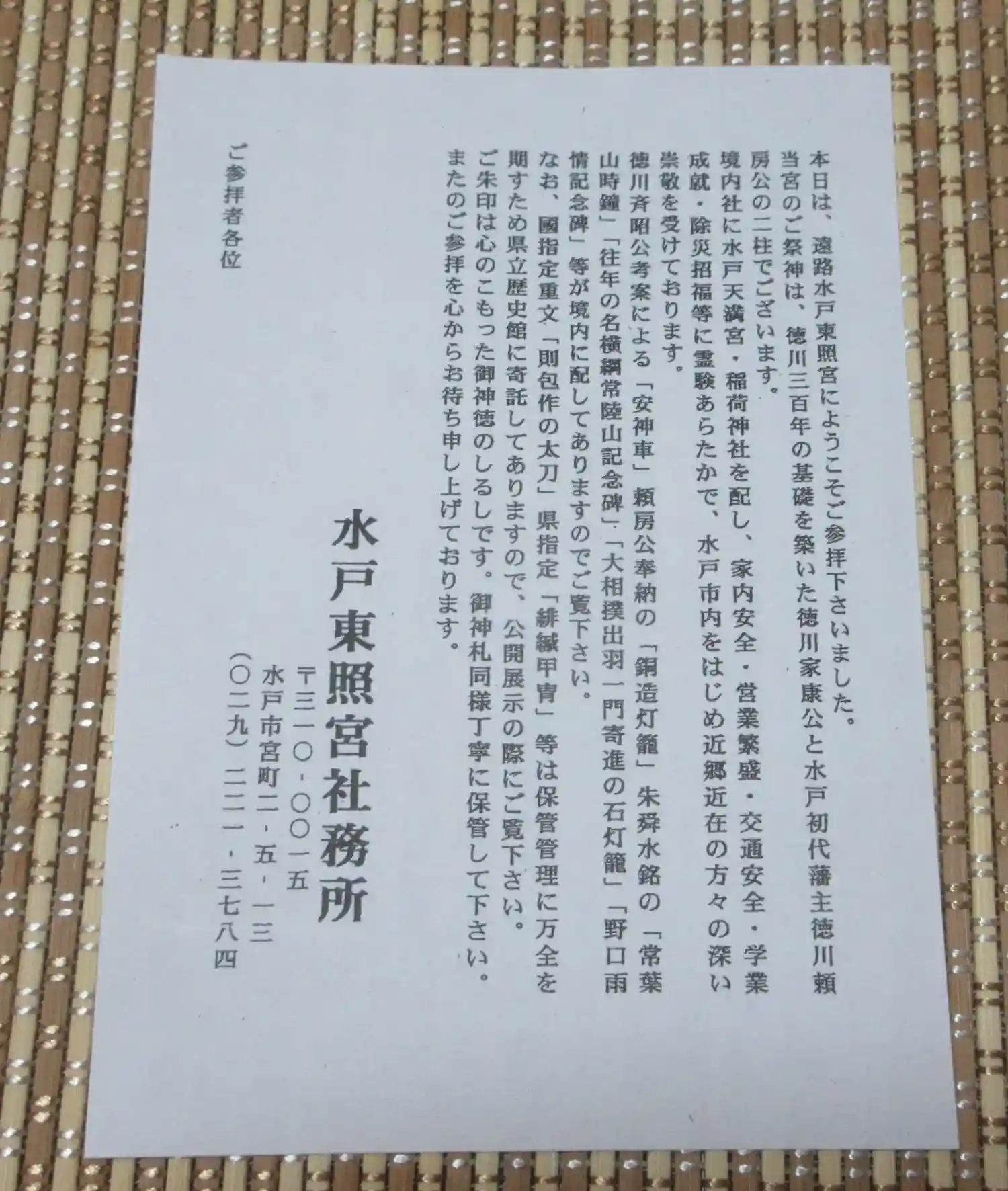 水戸は徳川御三家の土地です。公式サイトによると「水戸初代藩主徳川頼房公が、父徳川家康公の御霊をこ…
