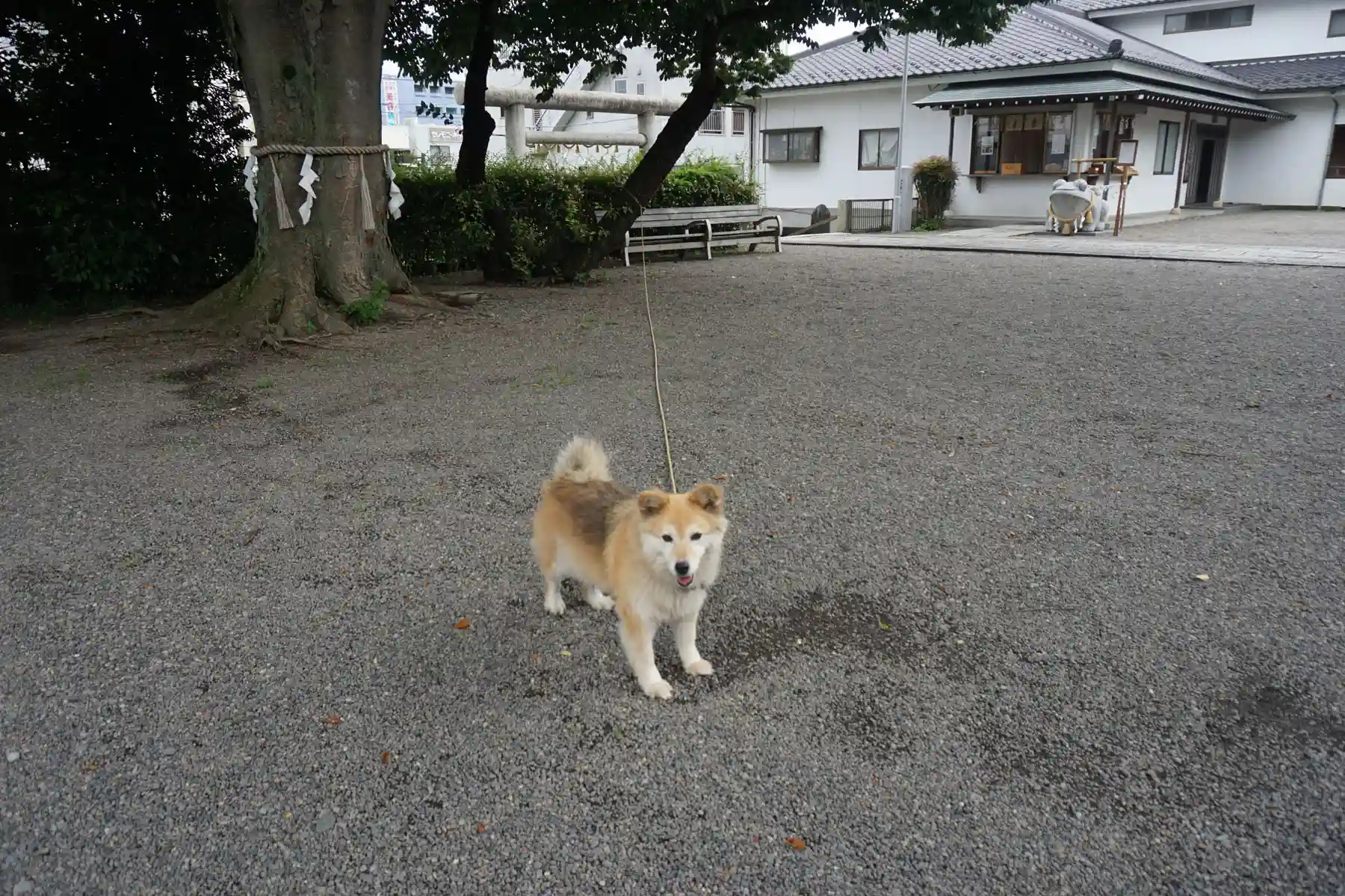神社で飼っている犬がすごく愛くるしいです。