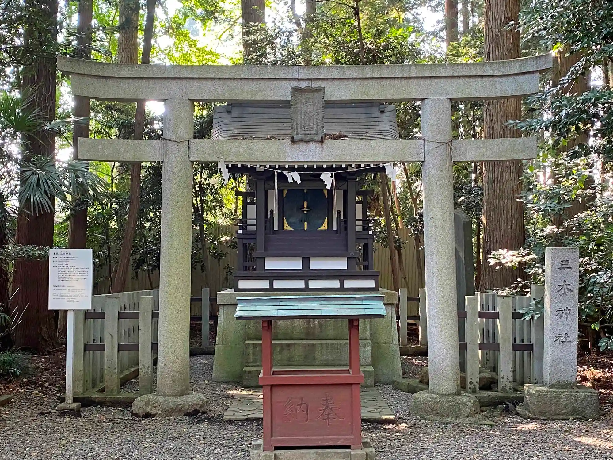 社殿の左奥にある末社<三木神社>の鳥居。当社は1965年の創祀で、鎮座の際にはかの松下幸之助氏から多大な浄財が奉納されたとのこと。(理由は下記↓)