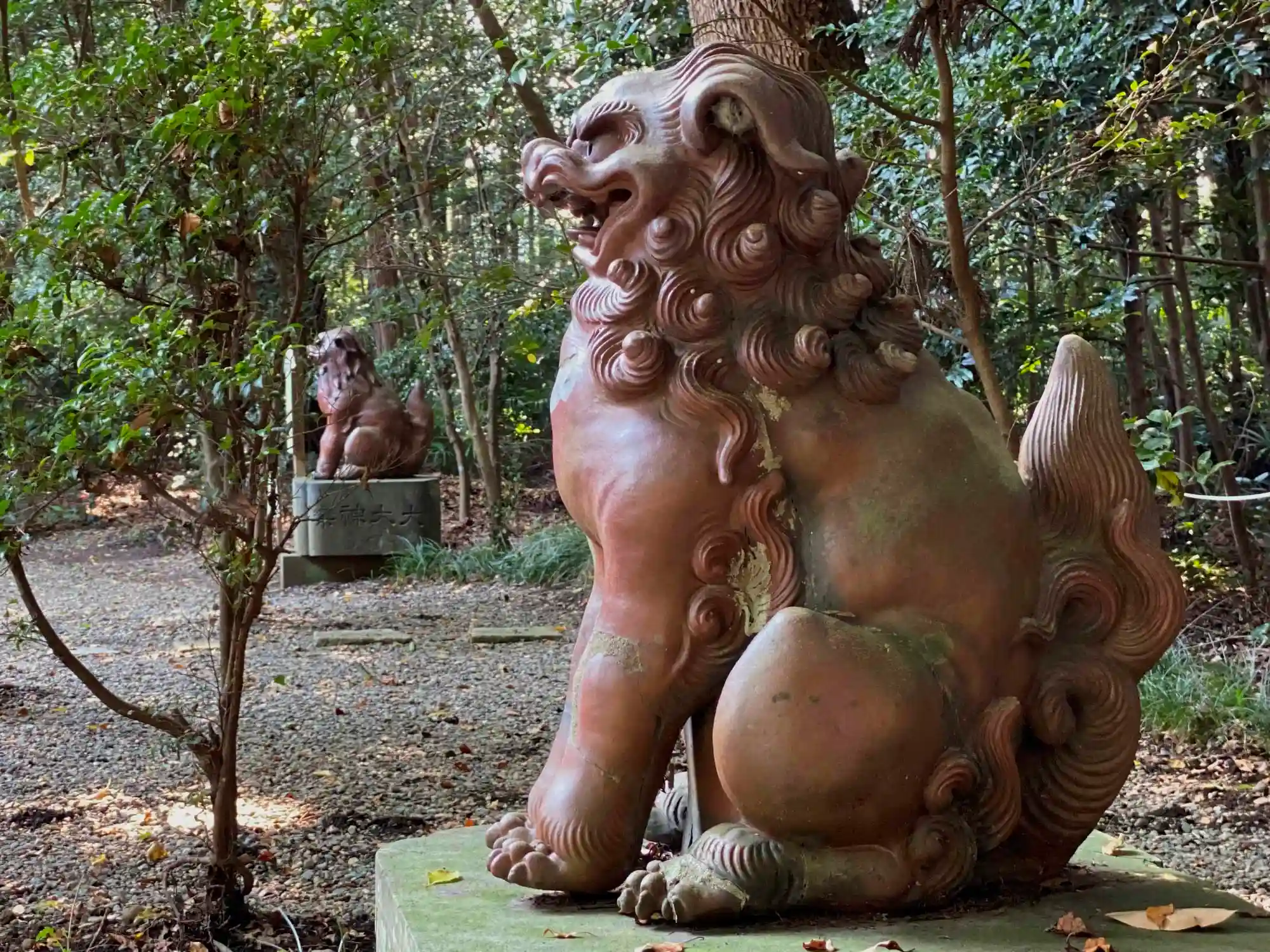 本殿の裏にある<備前焼狛犬>。当社創建期に県内の崇敬者の寄進。どこかで見たことがあると思ったら、<大洗磯前神社>の狛犬と同じとのこと。びっくり!(;゚Д゚)