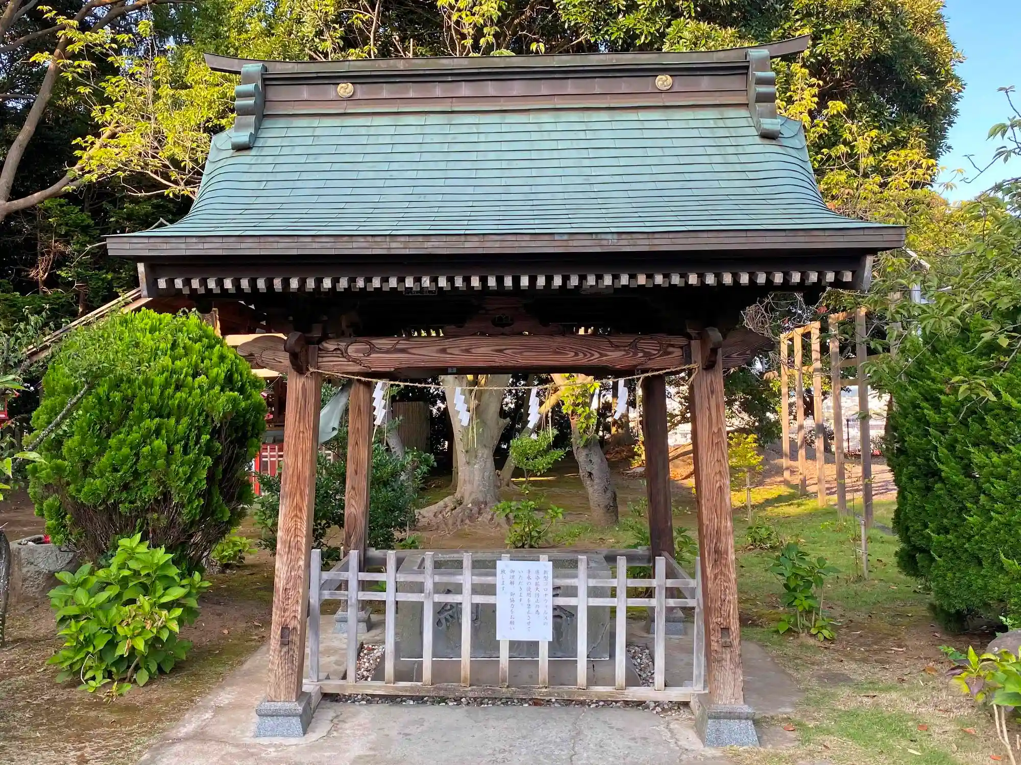 三の鳥居をくぐって真っ直ぐ進むと右手にある<手水舎>。