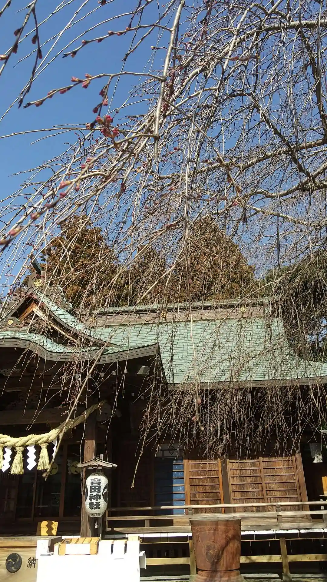 春近し、枝垂れ桜の紅つぼみ😊