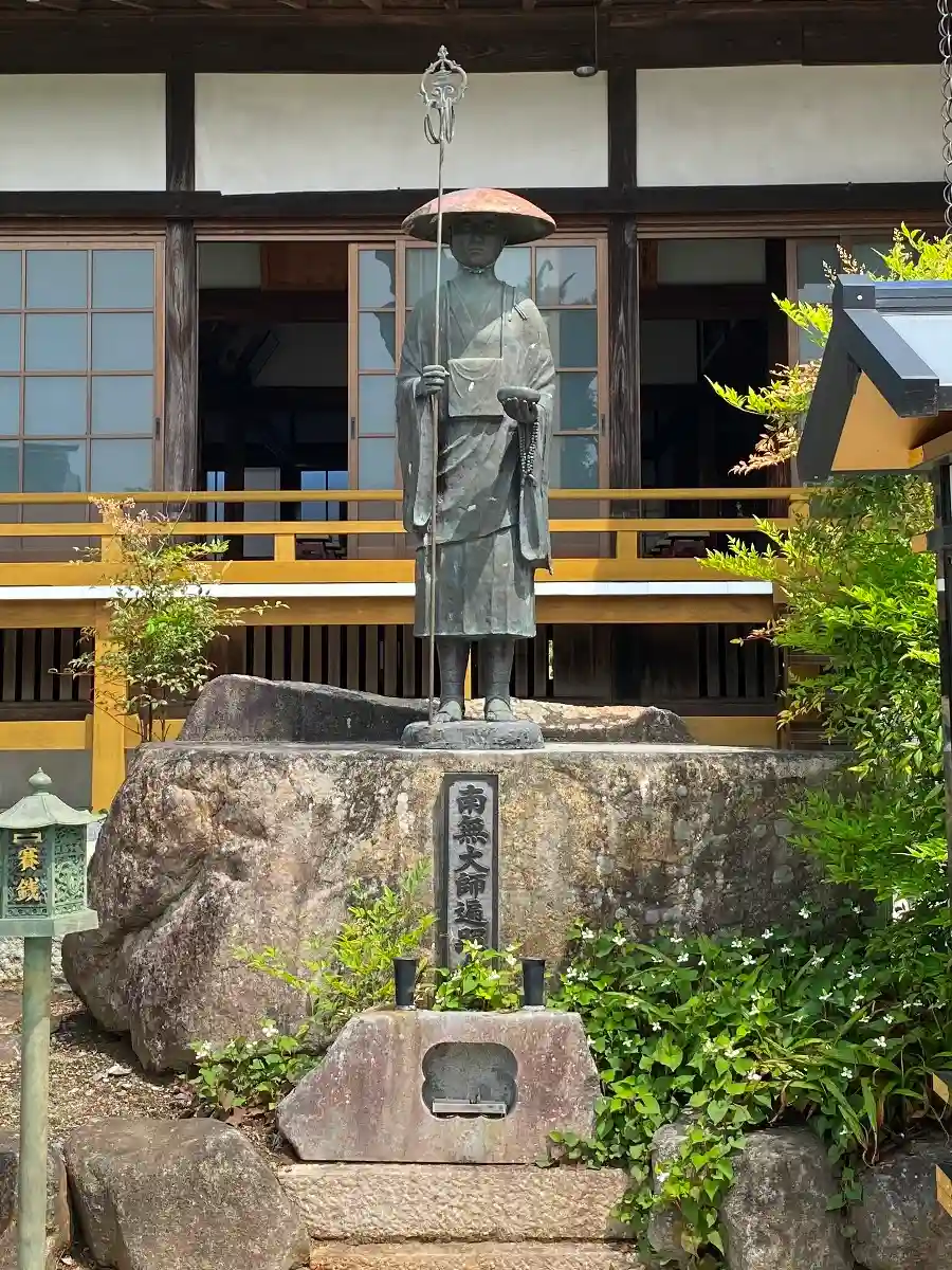 本堂前に立つ<弘法大師像>。