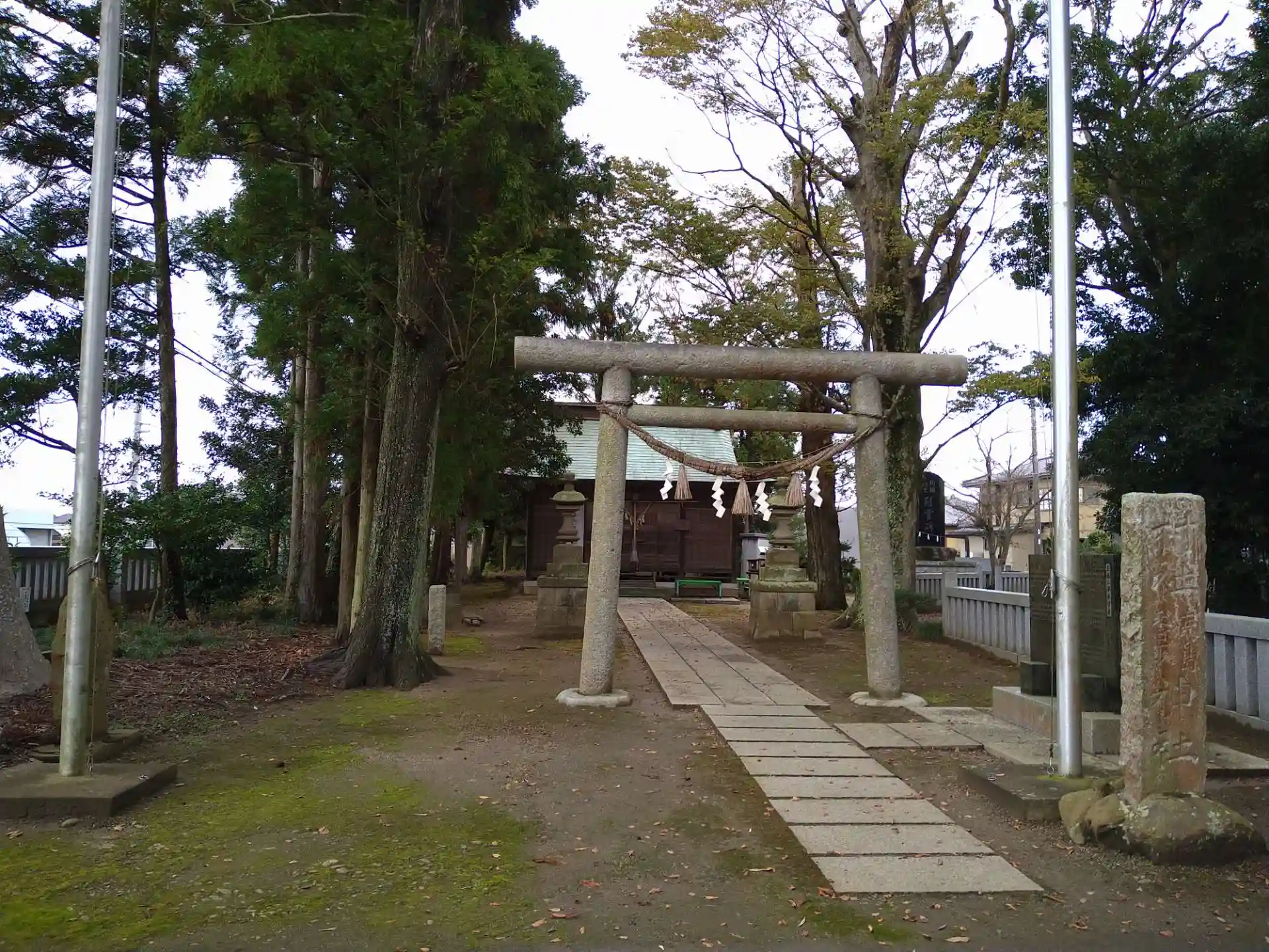鳥居の外側、道の向こうにも駐車場や倉庫になっているらしい敷地があって全体的に広い境内でした。
