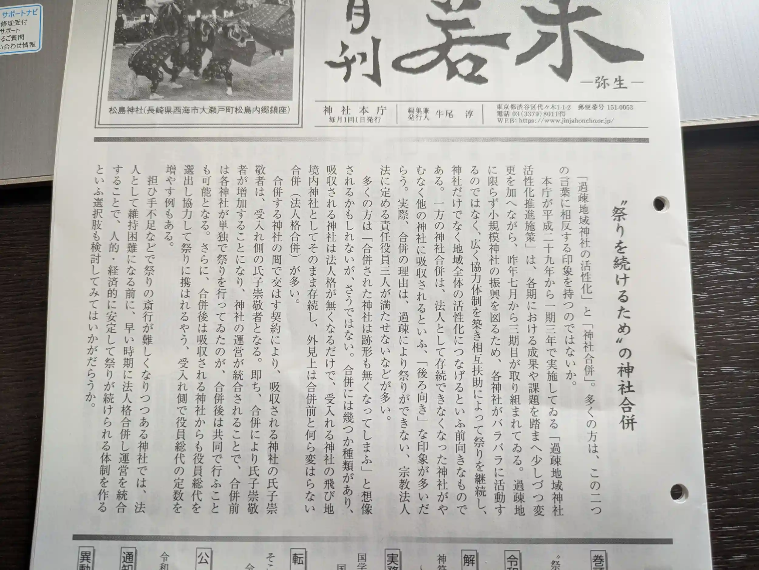 神社本庁の月刊紙の表紙に