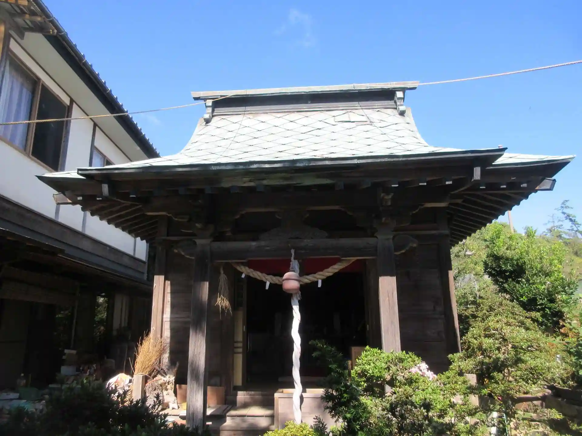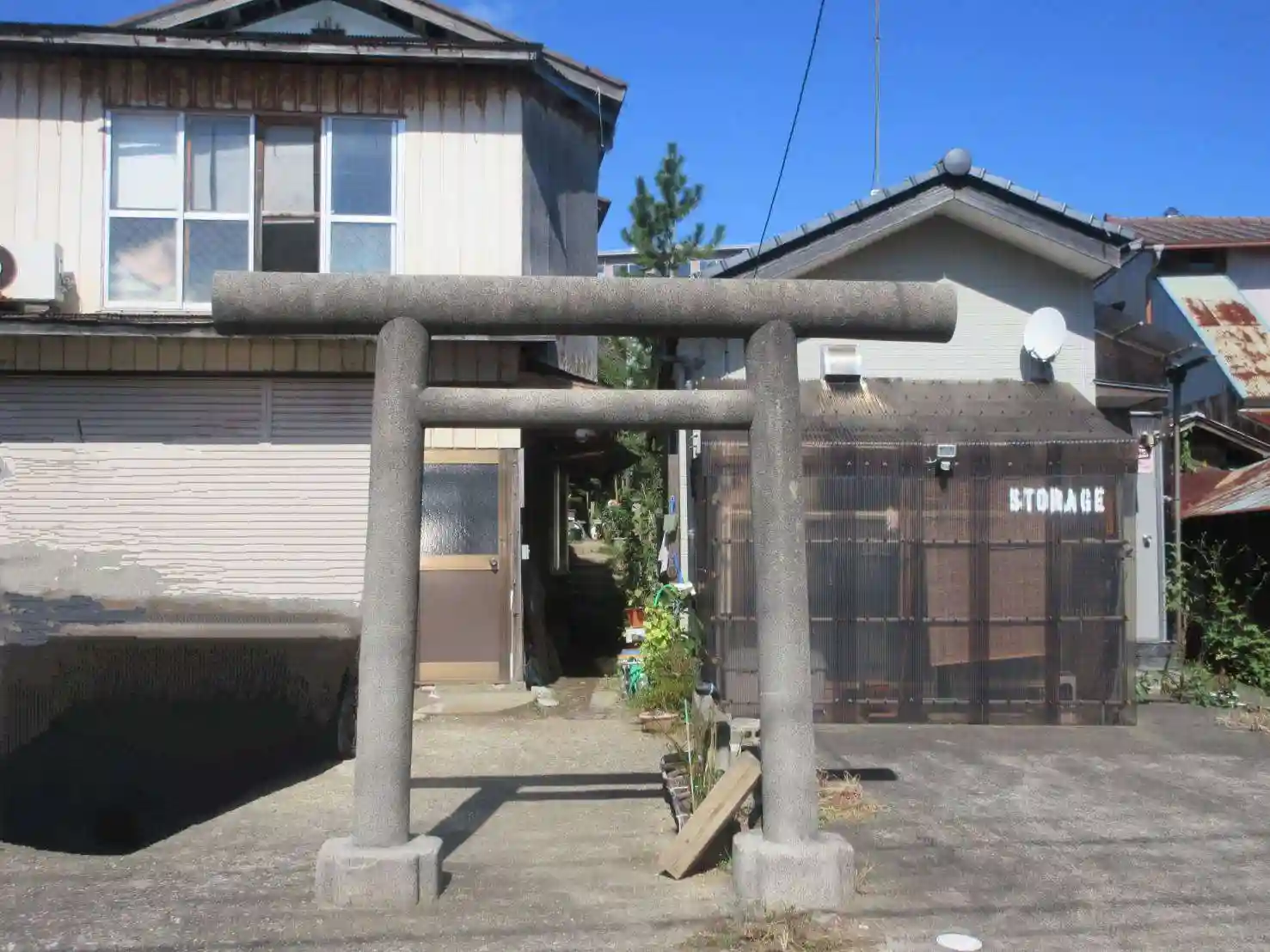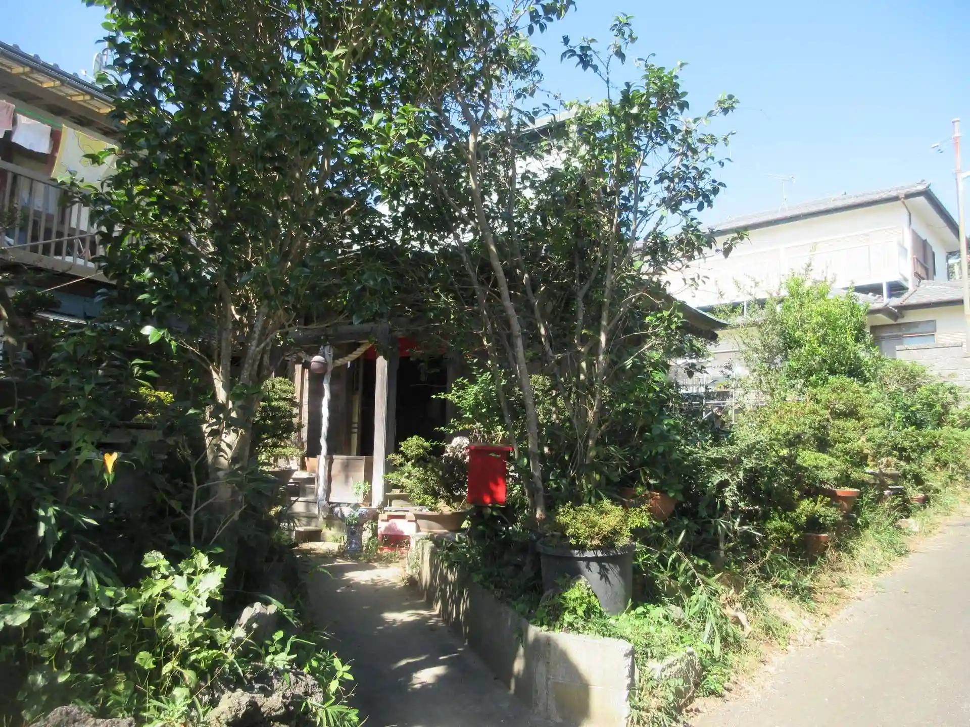 鳥居をくぐり、小さな自転車も通れない細い道を入ると、神社があります。