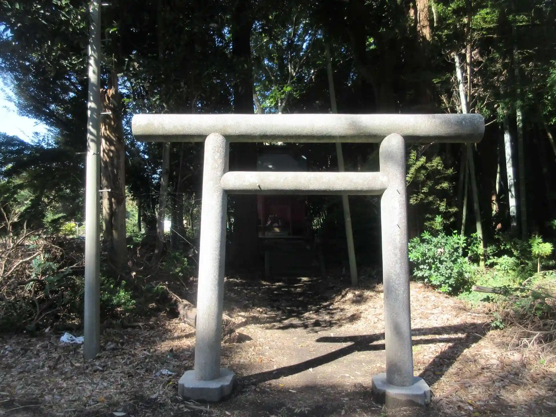 道路沿いにある小さいながらも落ち着いた神社です。