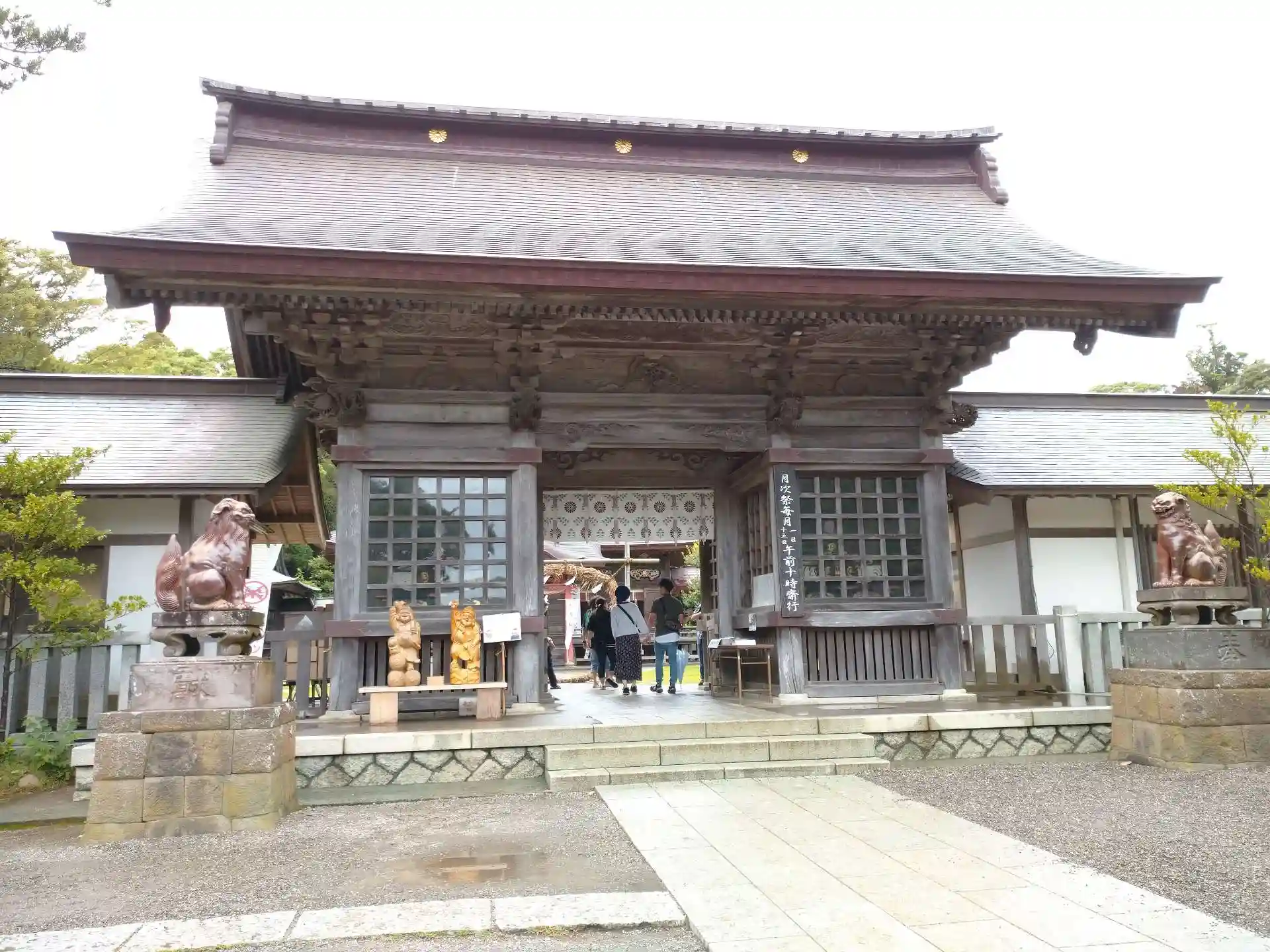 <随神門>両脇に陶製の狛犬がいます。