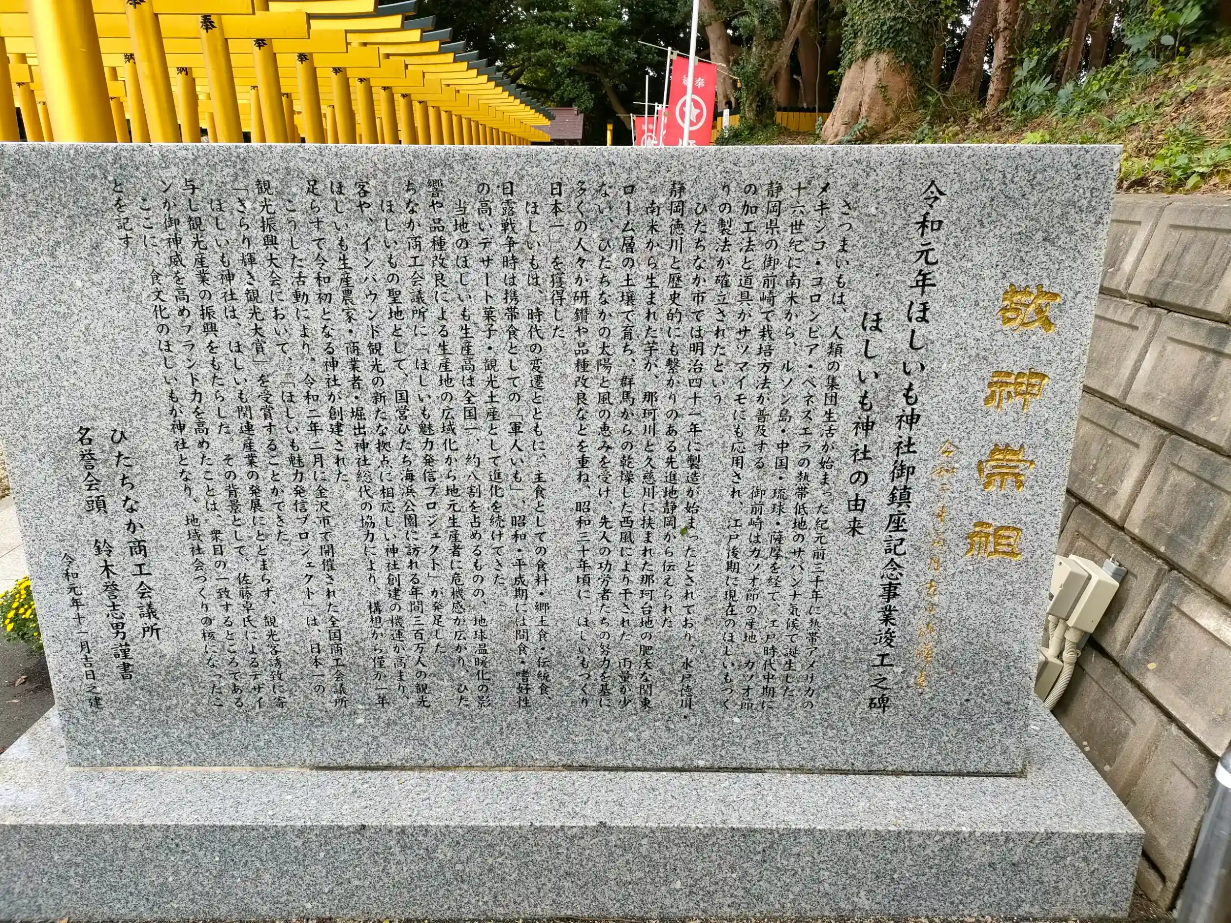 茨城県ひたちなか市のほしいも神社!ほしいもの(欲しいもの)が手に入るというご利益のある神社です。黄金の鳥居、黄金のバイクが特徴的。茨城特産の干し芋も販売されています。