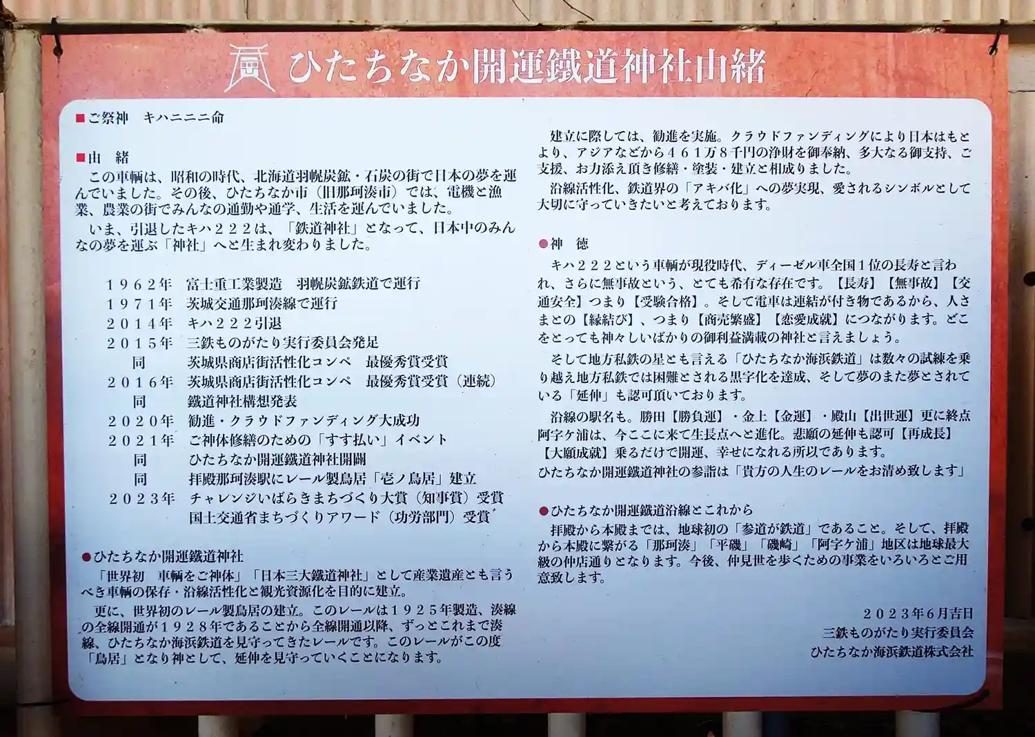 | 名称 | ひたちなか開運鐡道神社 |