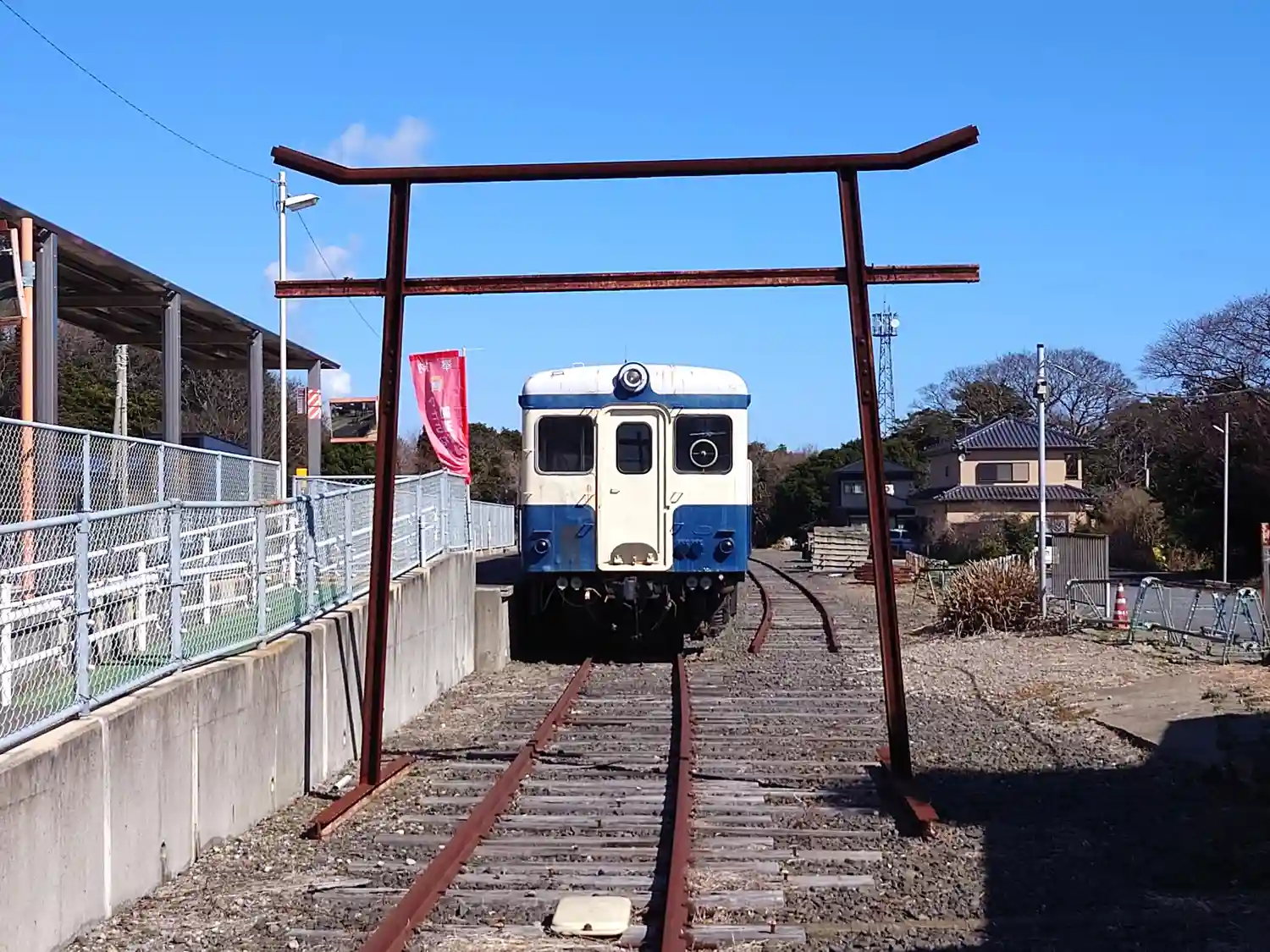 那珂湊駅のレール製鳥居は、拝殿