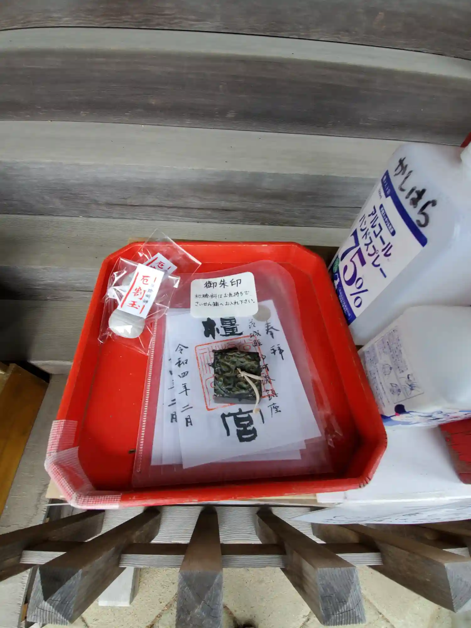 御朱印は書置きのものがこのようにおいてあり初穂料は賽銭箱へというシステムでした。