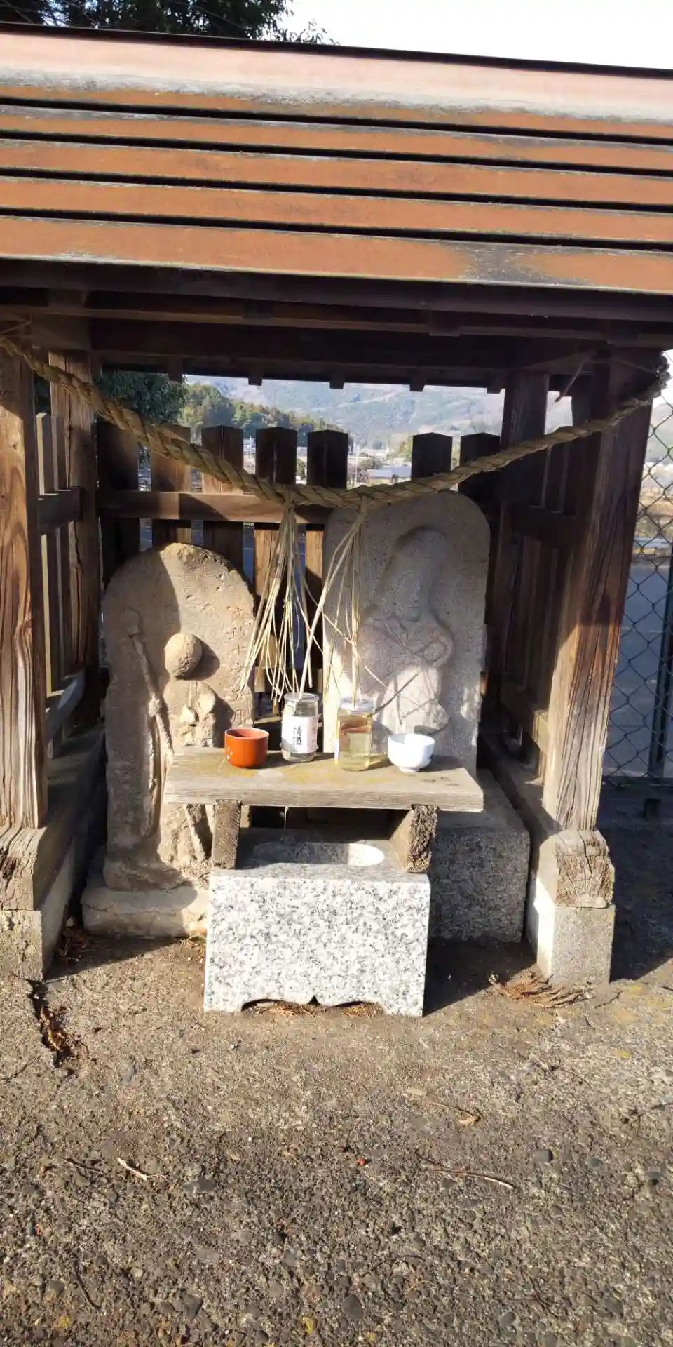仕事で近くまで来たので立ち寄り参拝しました。無人の小さな神社です。近所の人たちによってか、お正月を迎える準備も終えた様子です。近くには月待塔(二十三夜)もあり、むかしは近隣の人たちが境内で月待講をおこなっていたのでしょう