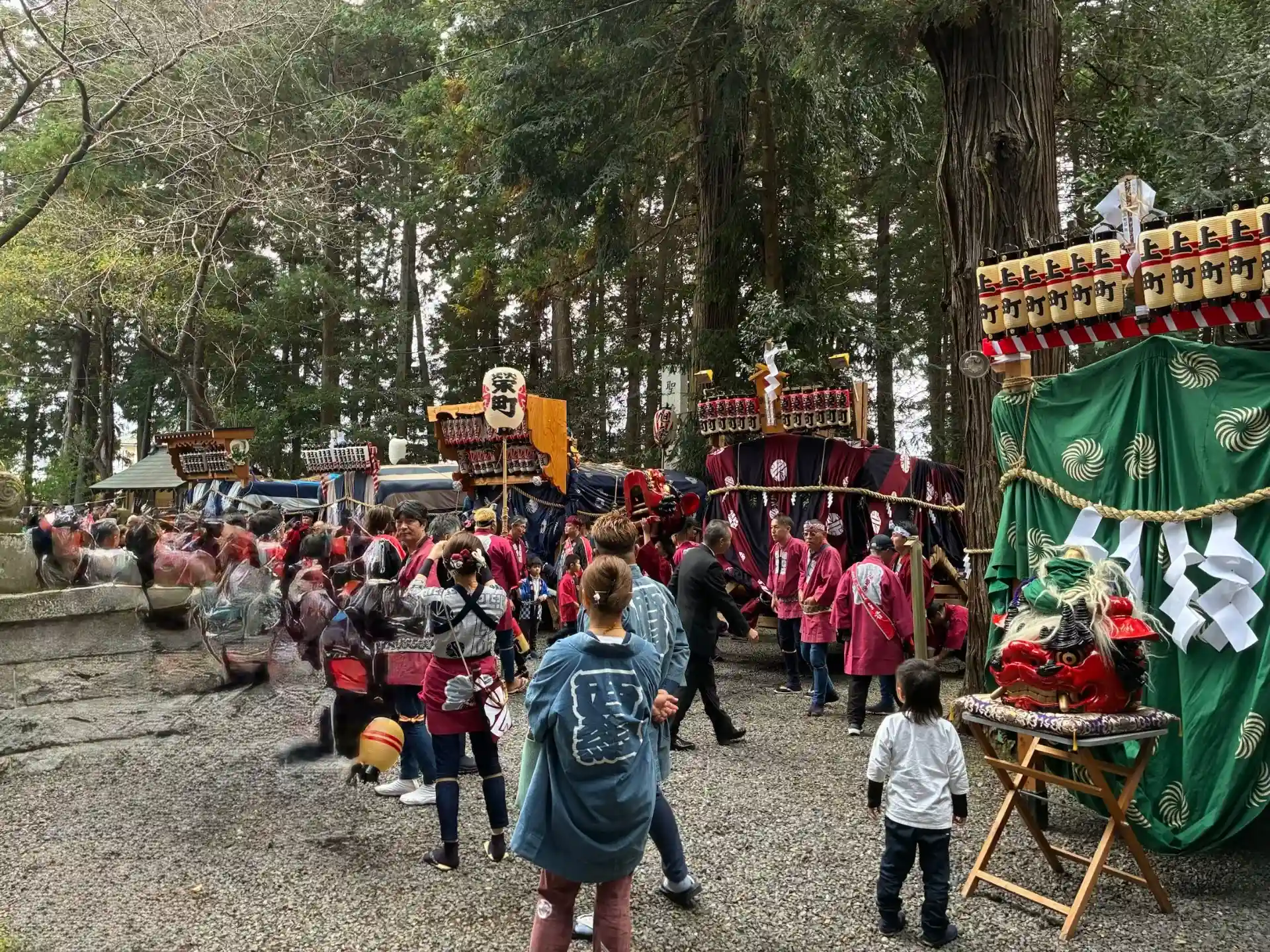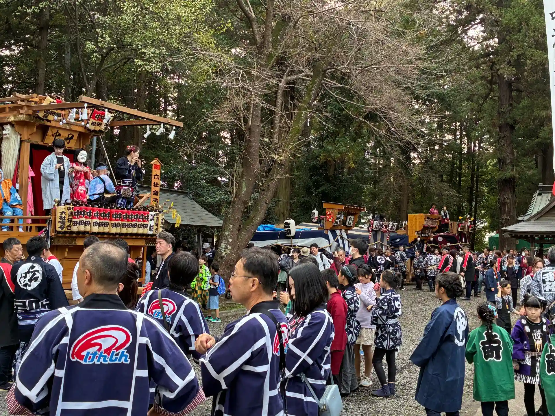 境内にはたくさんの山車が集合していて、いろんなお囃子が重なって、音の洪水!