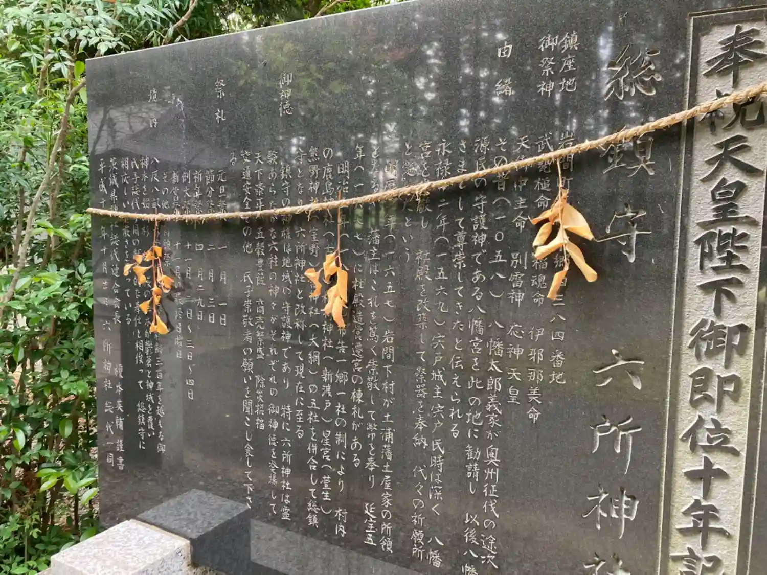 由緒書きに〆縄がかかり、所々読めませんね。