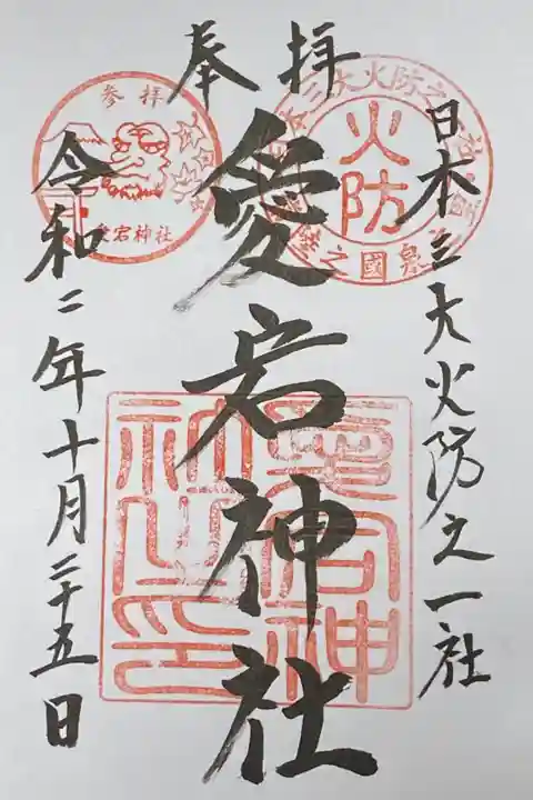 社伝によると、平安時代初期の806年、徳一大師の創建としている。近世に至る沿革は不詳。江戸時代には江戸幕府から朱印地3石を安堵されたほか、宍戸城主・宍戸氏、土浦藩主・土屋氏から崇敬を受けた。1823年に神道家の平田篤胤が『仙境異聞』を出版し、筑波山地(筑波山、加波山)の天狗伝説を記載しているが、その中で当社のある愛宕山も岩間山の名で「愛宕宮」の周りに「十三天狗の宮」があると記載し、江戸文化人に霊界としての「岩間山」が知られるところとなった。