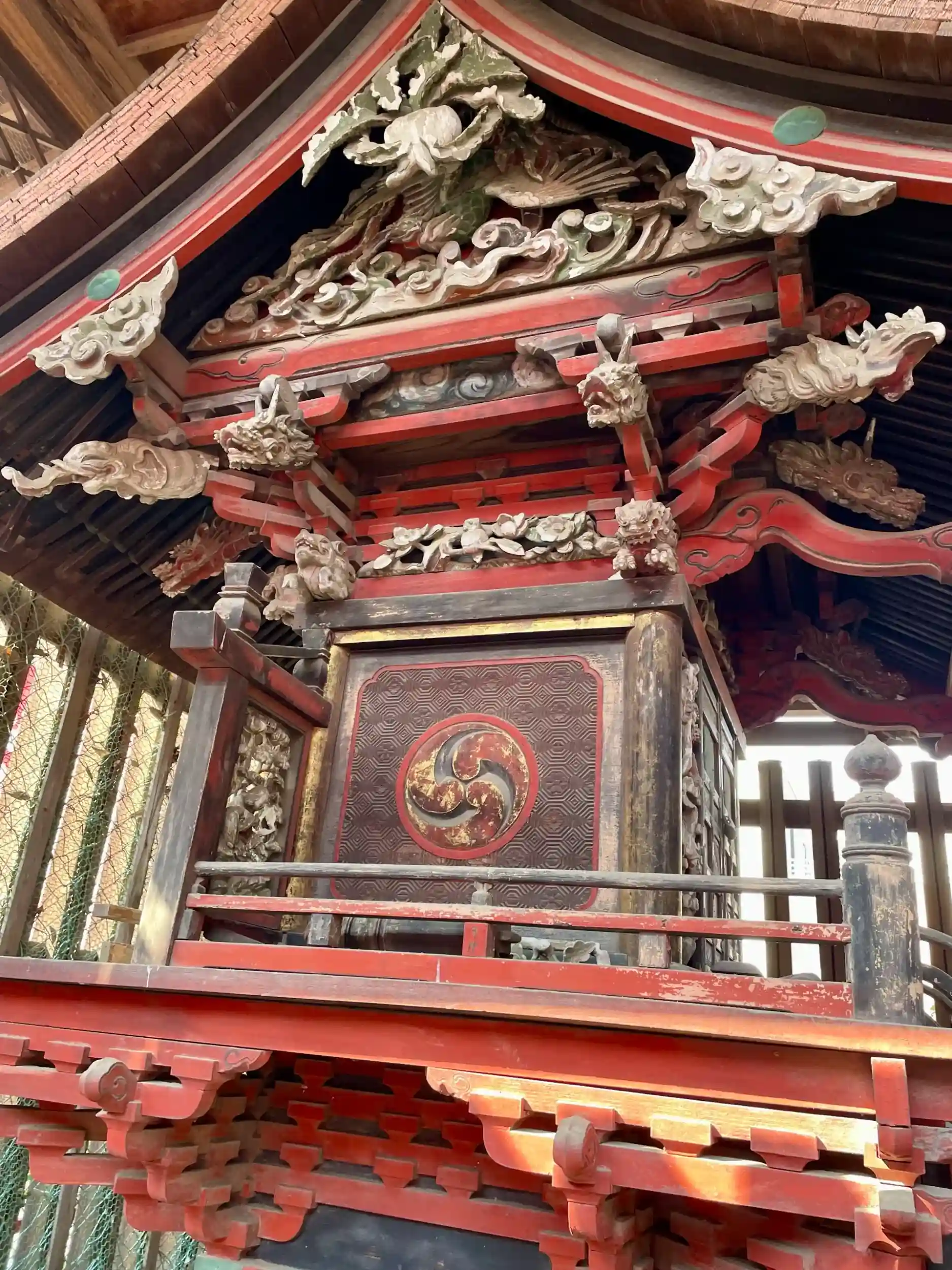 現在の本殿は元禄10年(1697)に再建されたもので、随所に精緻な彫刻(象、龍、獅子)が施され建物全体が極彩色に彩られており、笠間市指定有形文化財に指定されている。