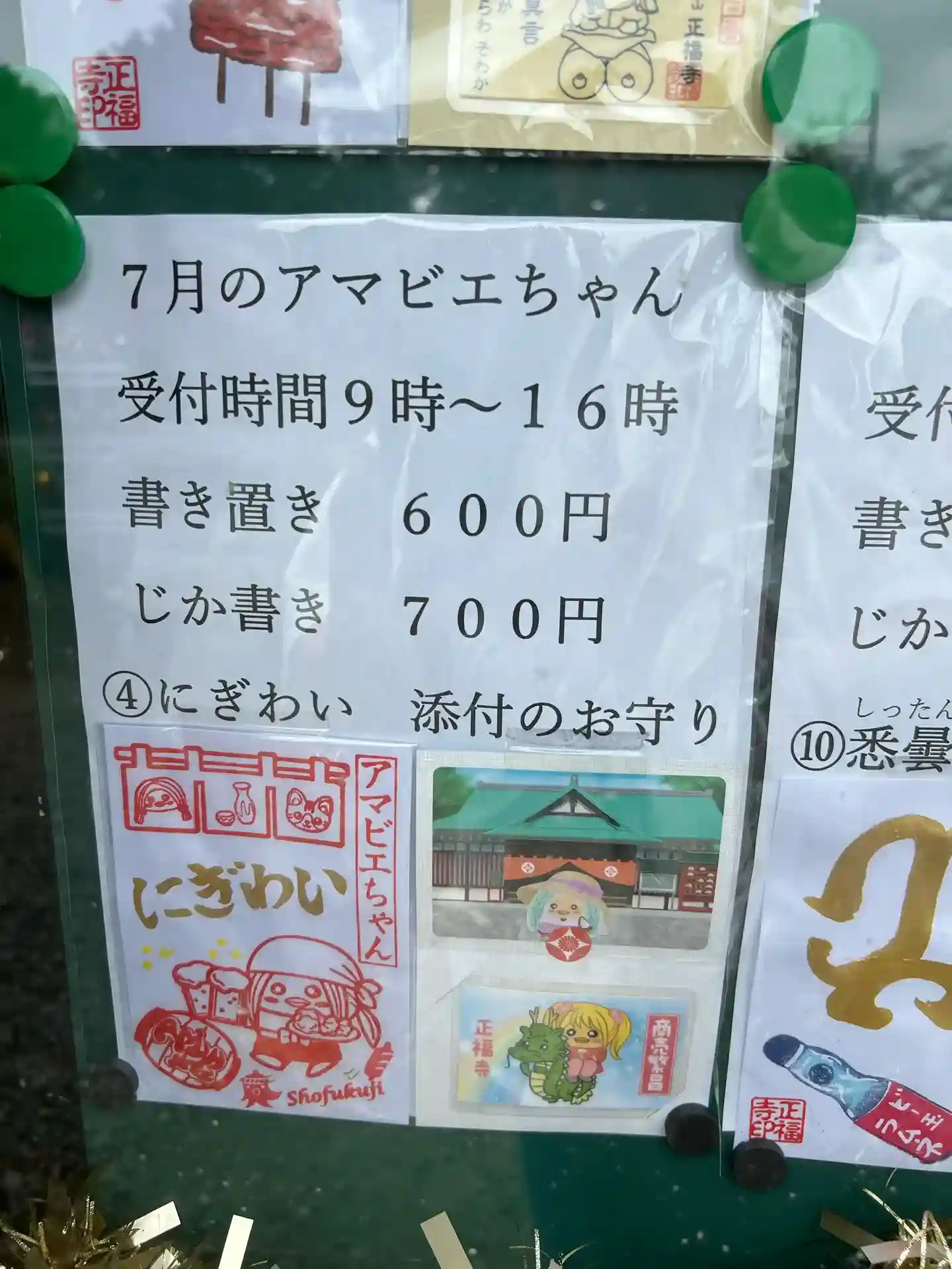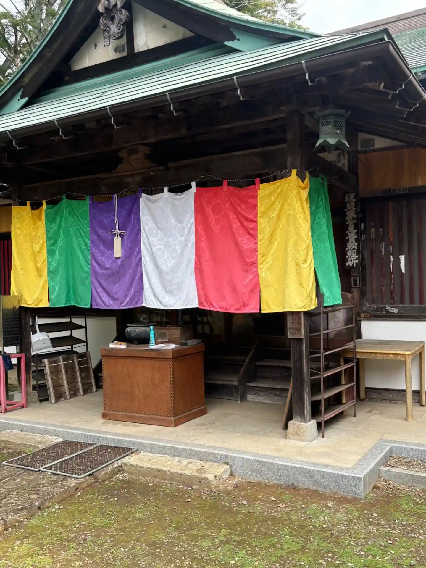 2025.7.31②入り口にたくさんのカラフルな御朱印。これを御朱印と言うべきかどうかは疑問も残る…