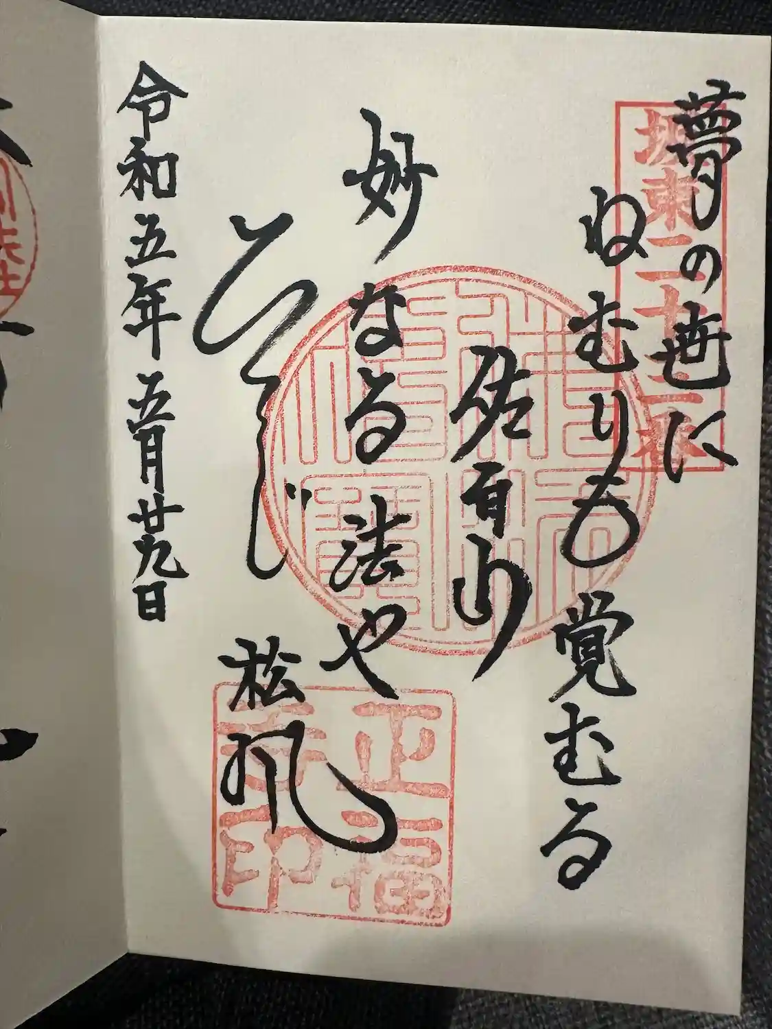 参拝日の印を押すスペースが無くなってきたため、裏の御詠歌のスペースに捺していただきました✨