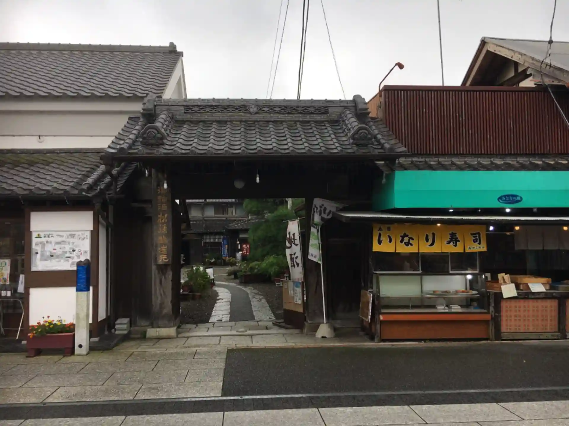 歴史を感じさせる休憩処ですが自動販売機が併設。せっかくの景観が。。今昔物語としておきましょう。笑