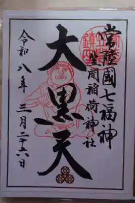 その昔、胡桃の森があった場所に稲荷大神をお祀りされたことから、右下に胡桃下と書かれています。常陸國七福神の大黒天の御朱印も。菊まつりの期間限定御朱印は菊と狐があしらわれています。 | |||