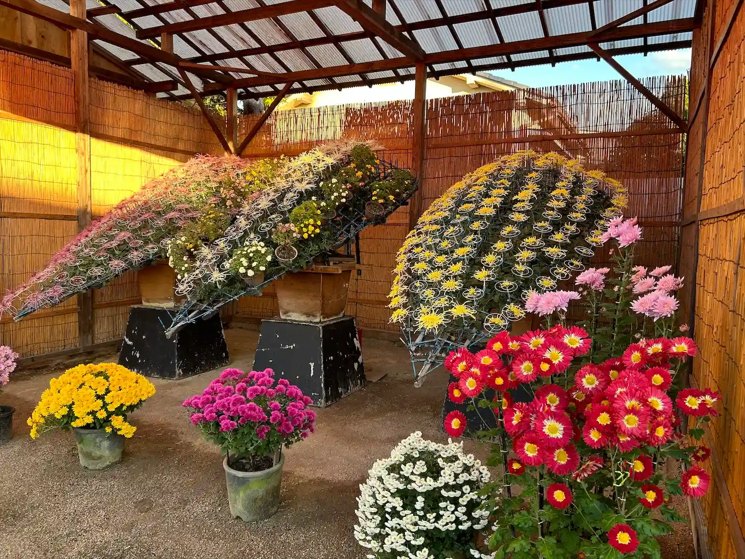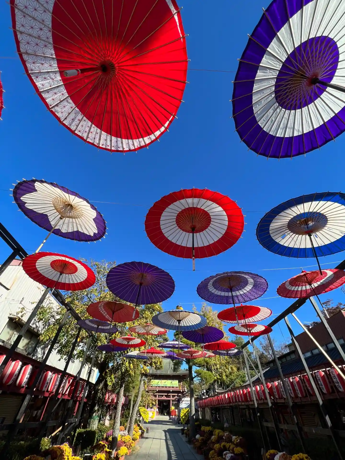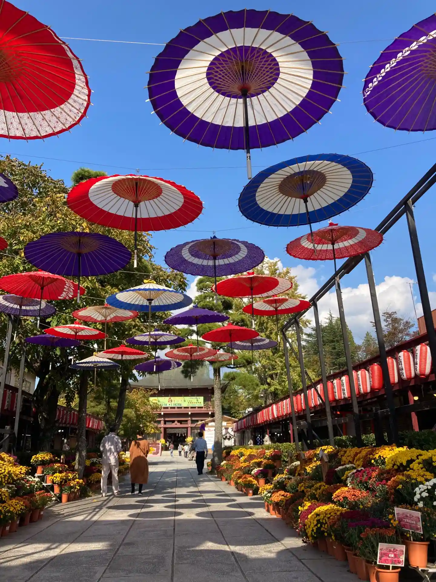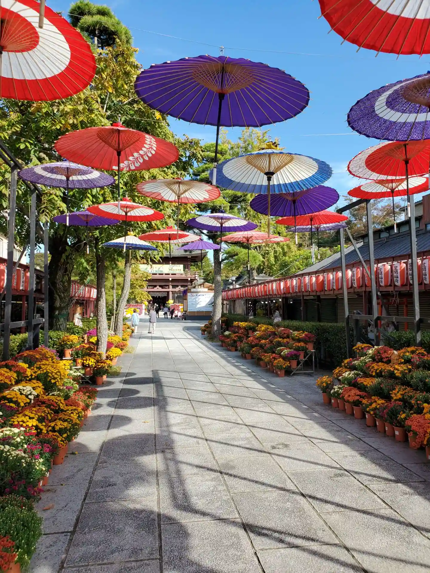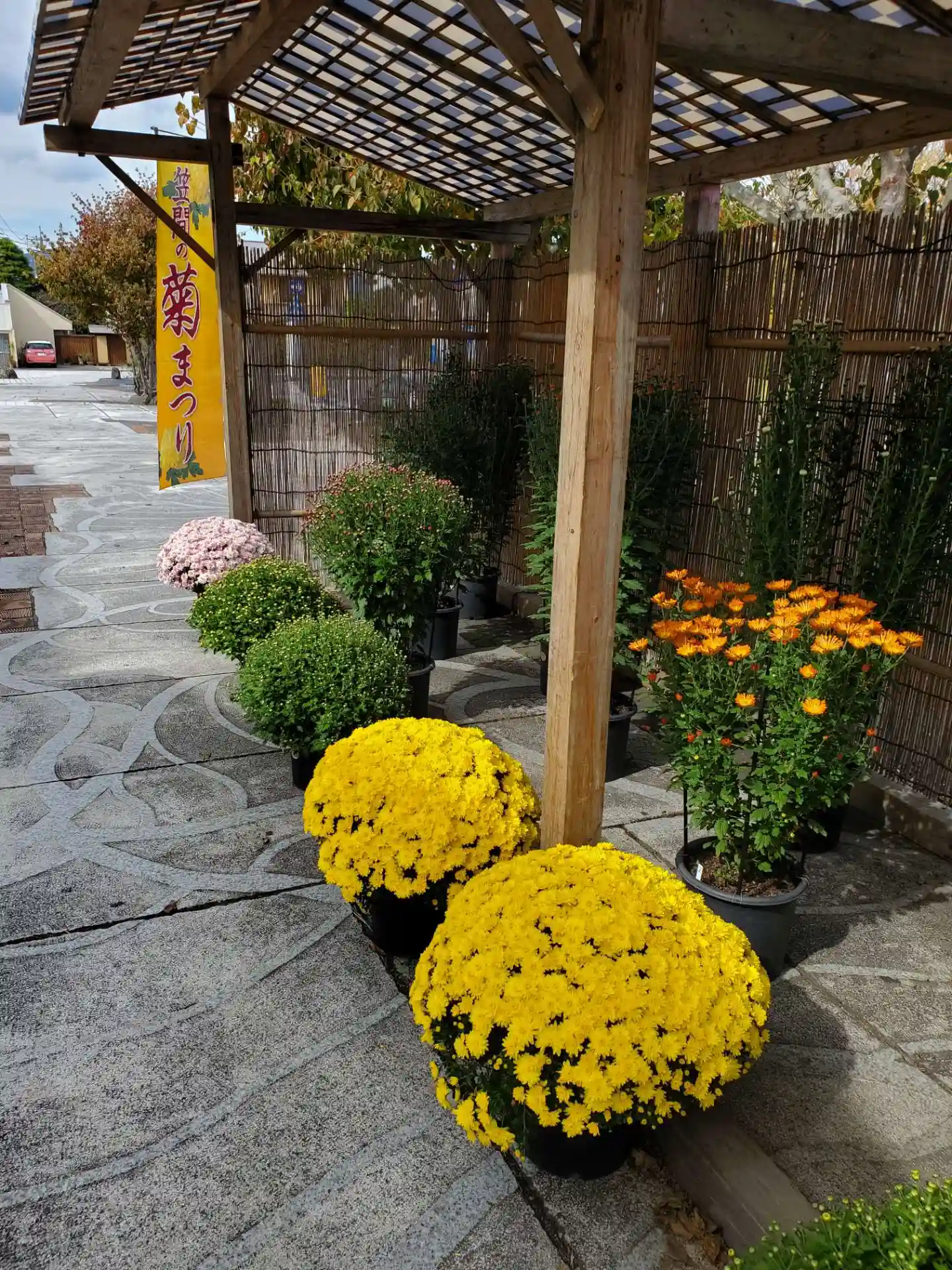 菊がズラリ。上には和傘。