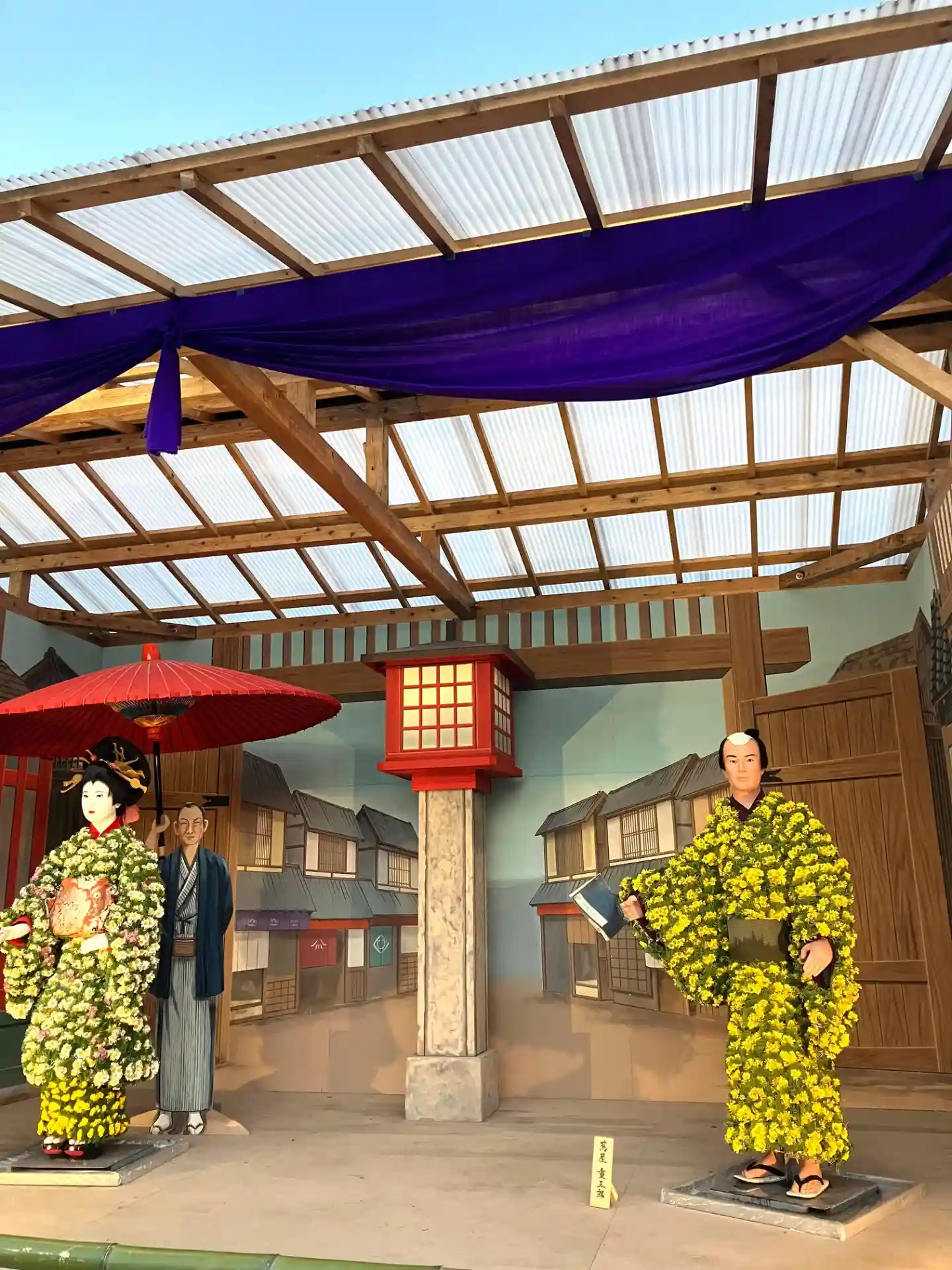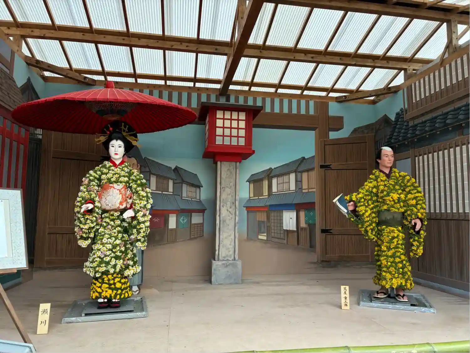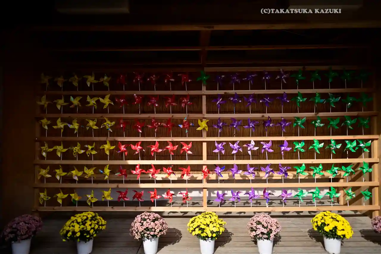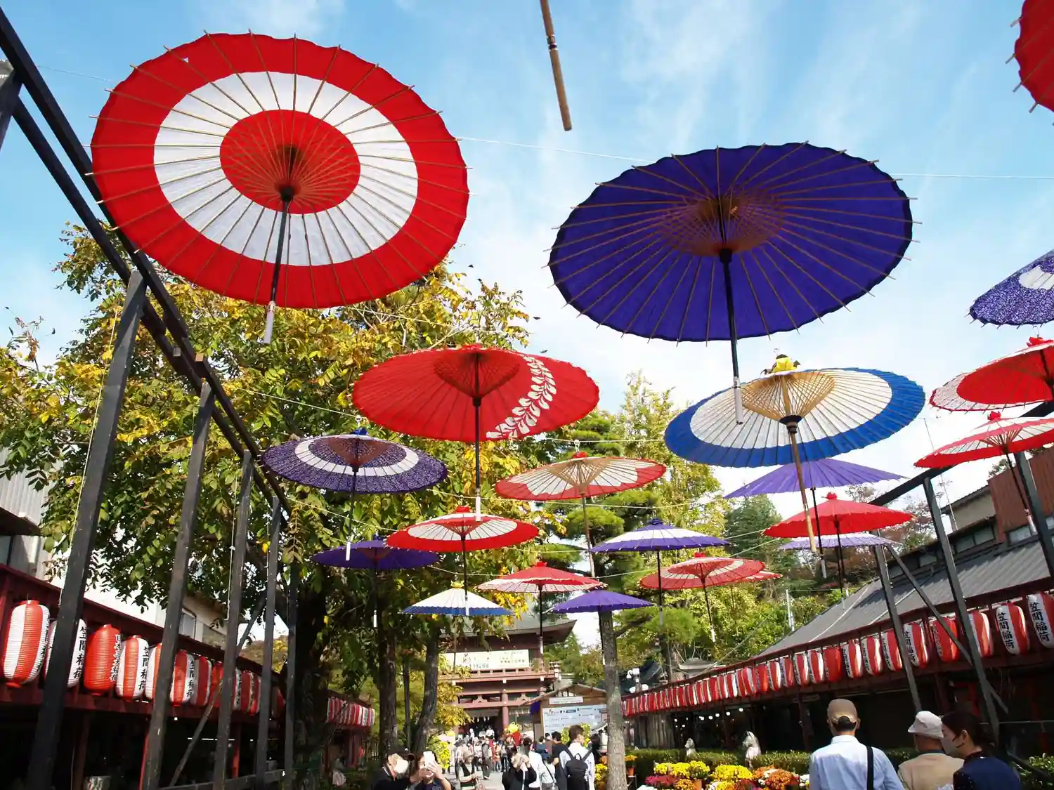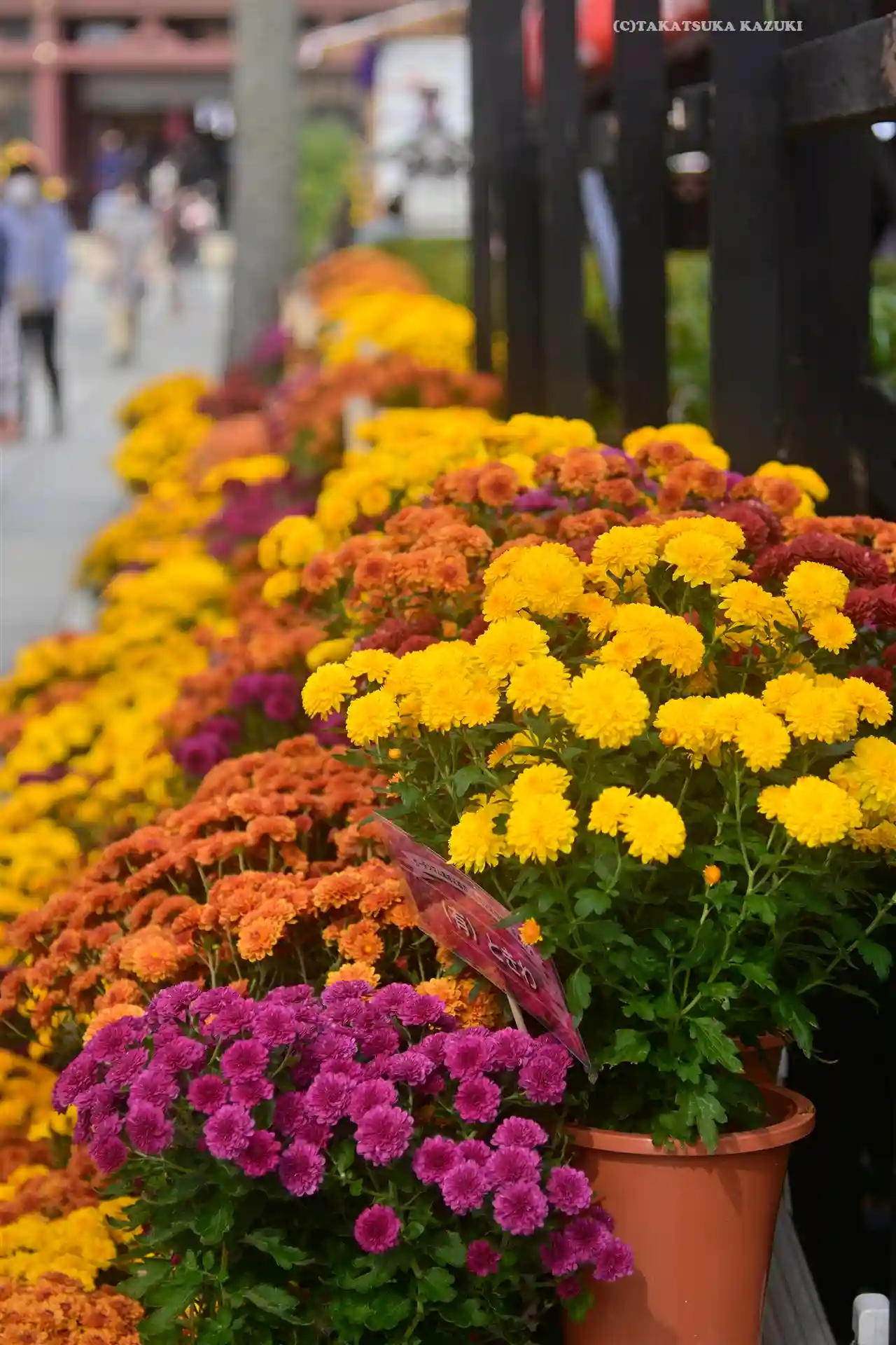 菊がズラリ。上には和傘。