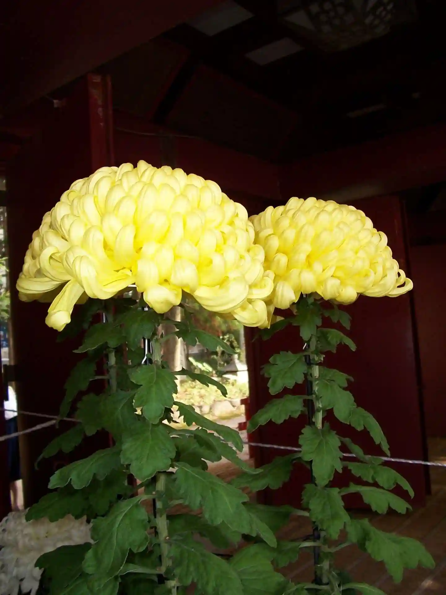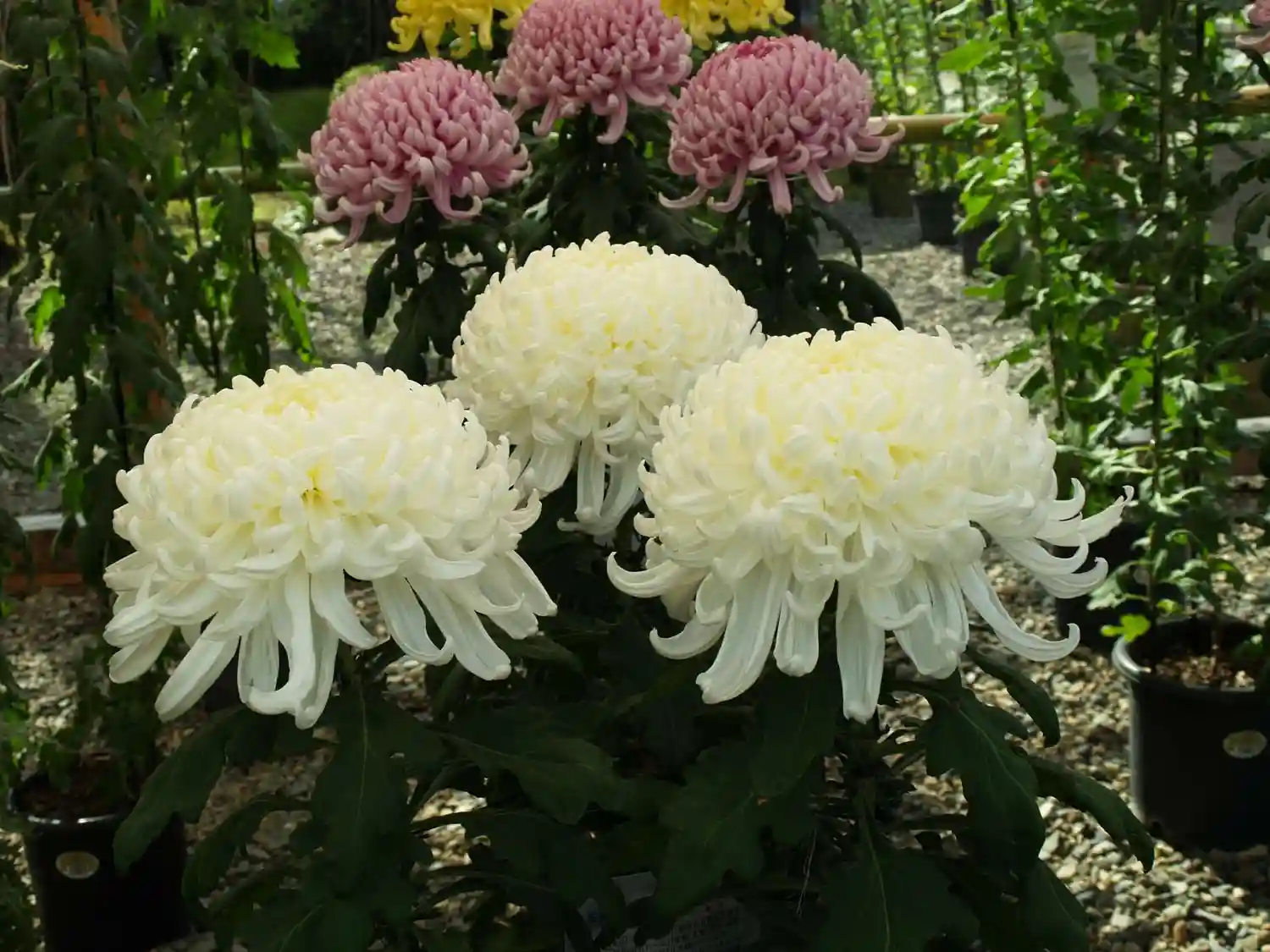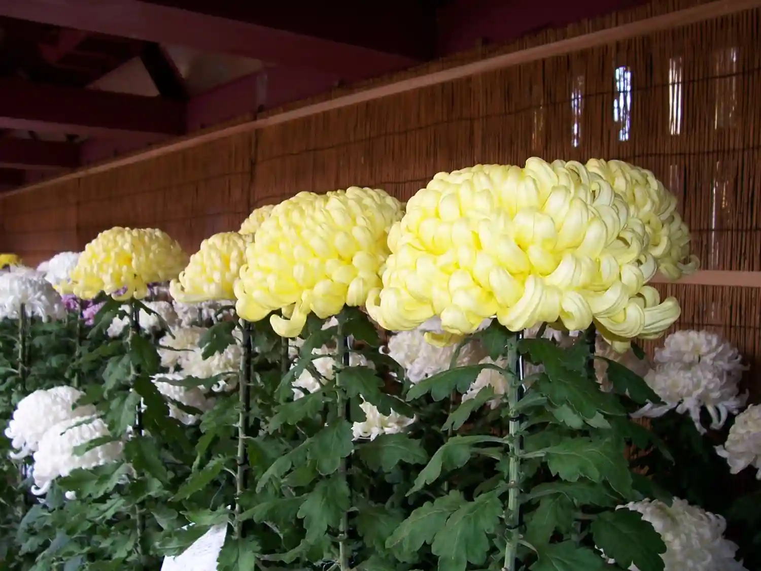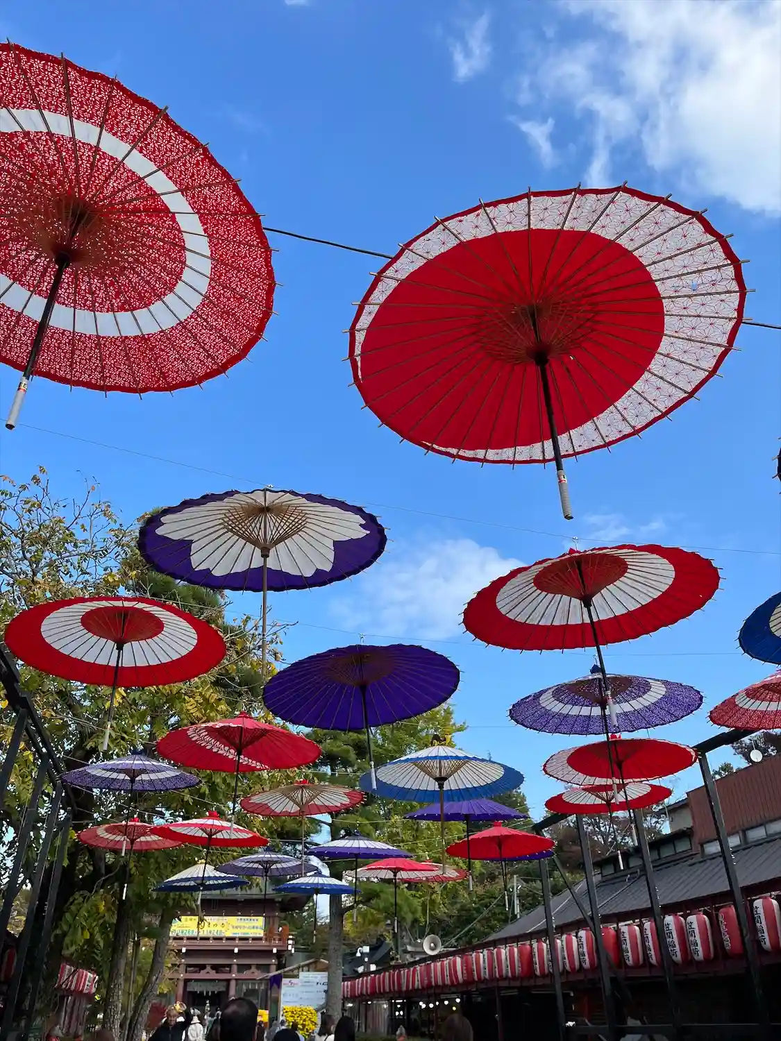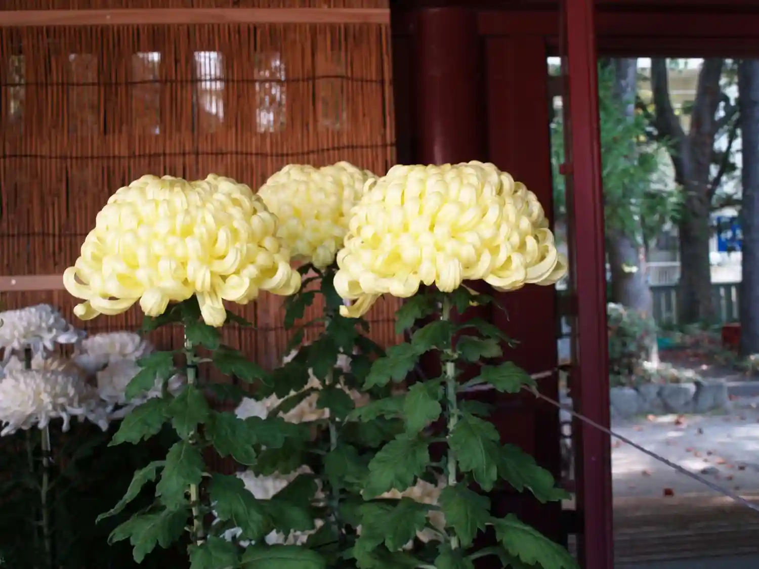 菊がズラリ。上には和傘。