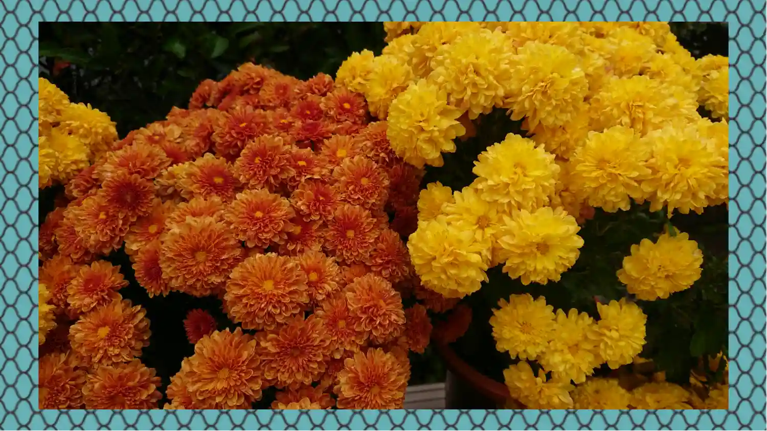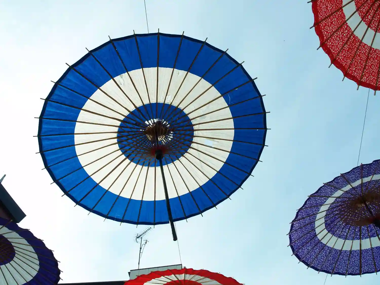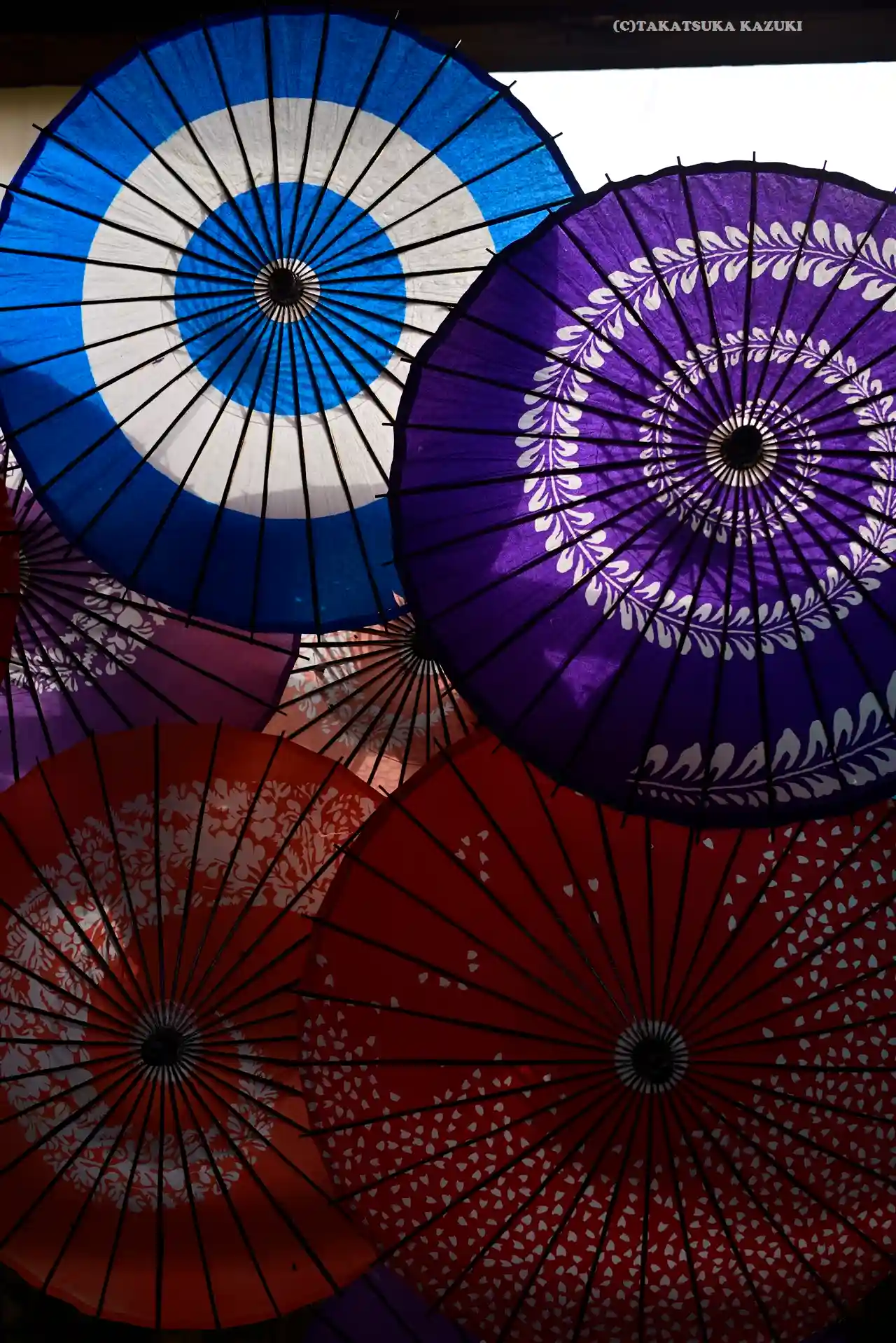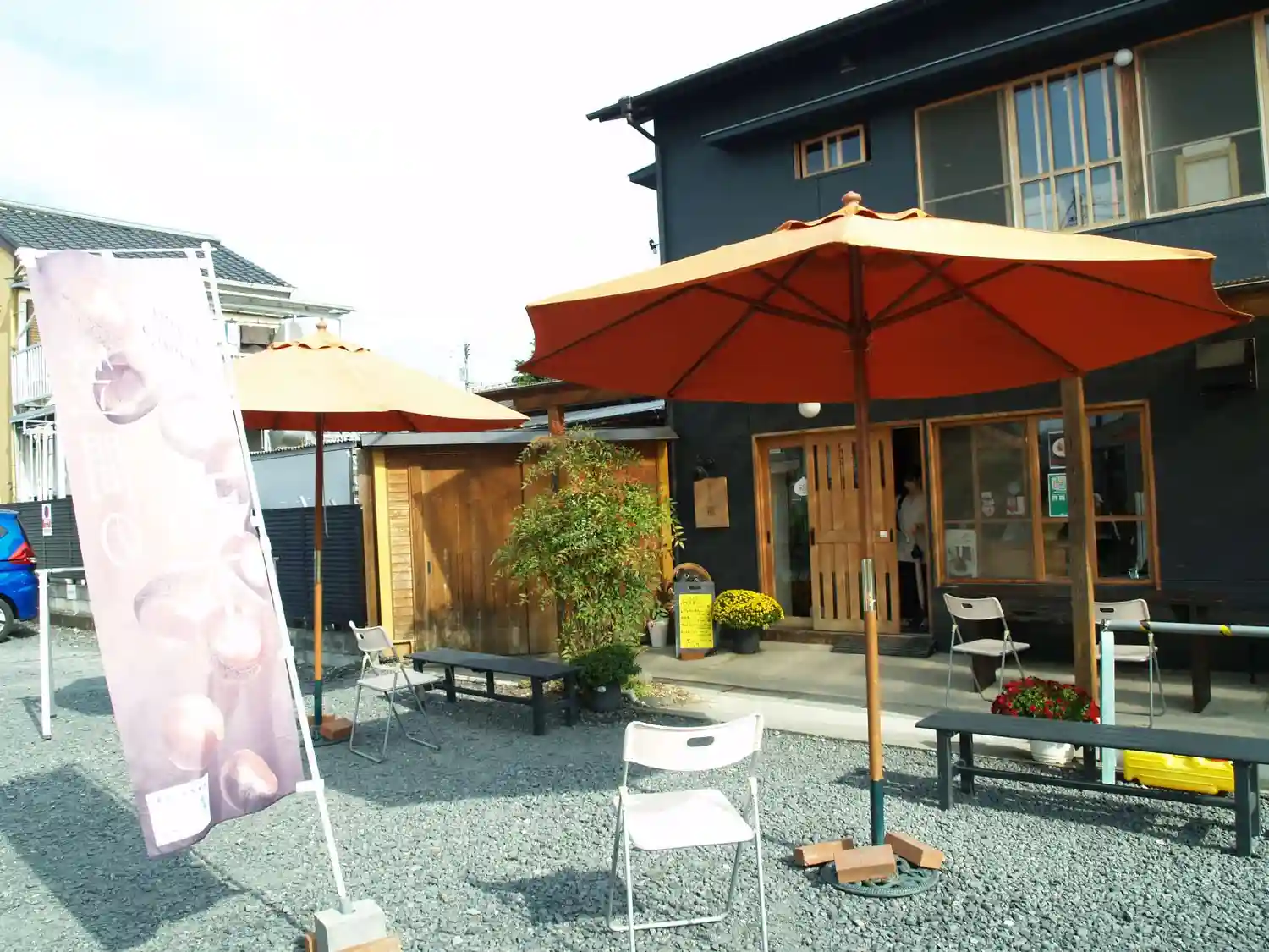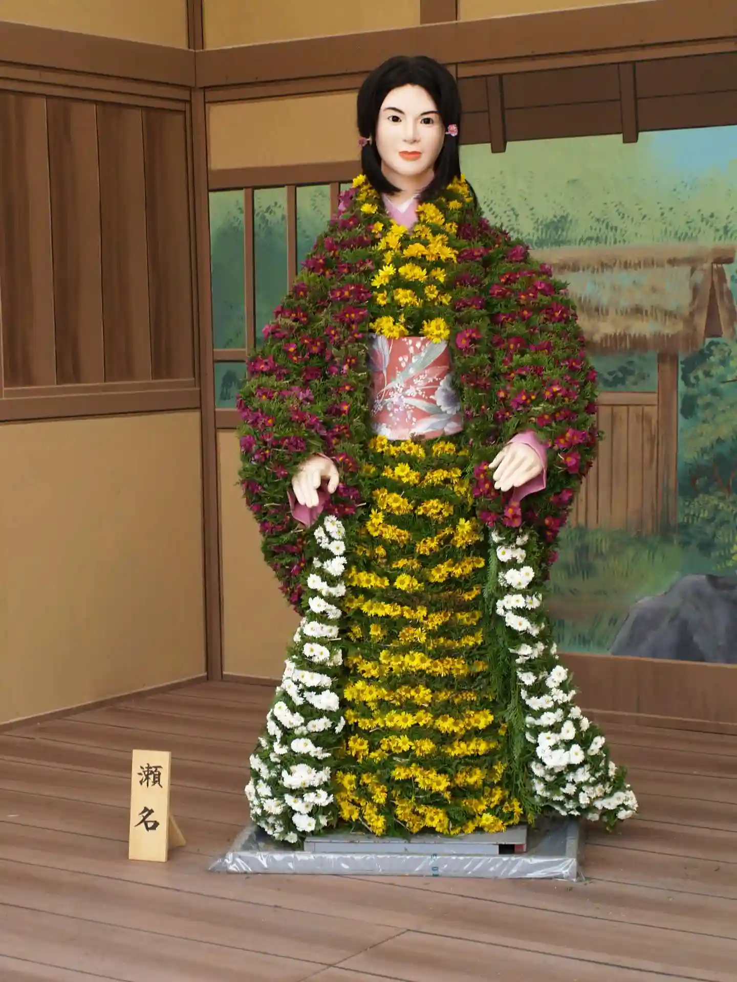 菊がズラリ。上には和傘。