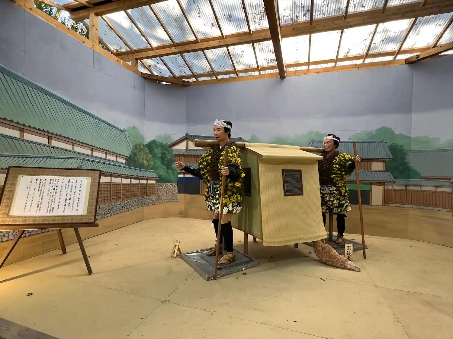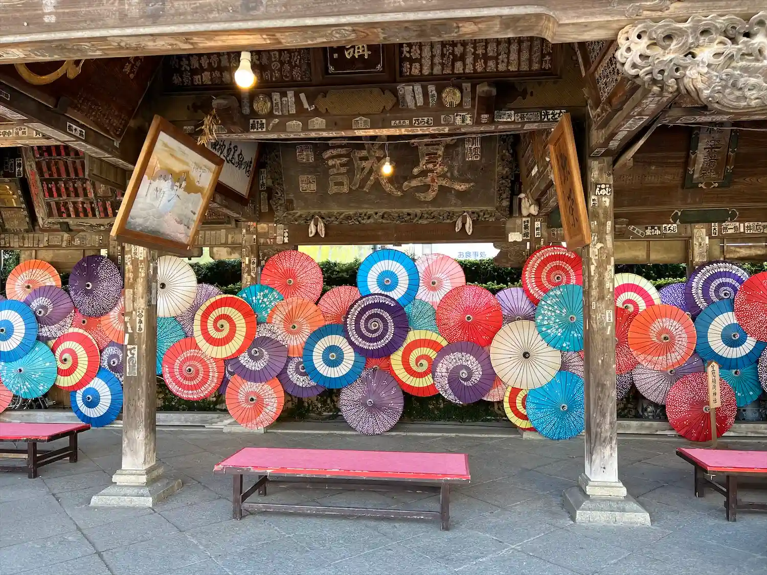 歴史を感じさせる休憩処ですが自動販売機が併設。せっかくの景観が。。今昔物語としておきましょう。笑