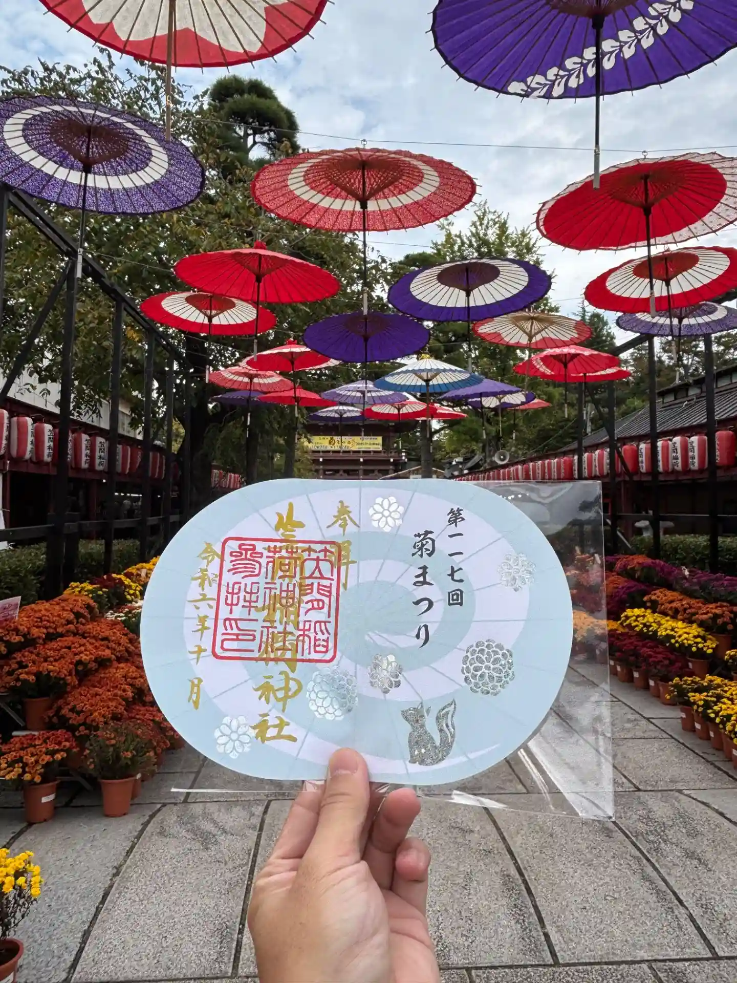 菊まつりに母と二人お詣りして御朱印を頂きました。天気も良く七五三の方たくさんいて、