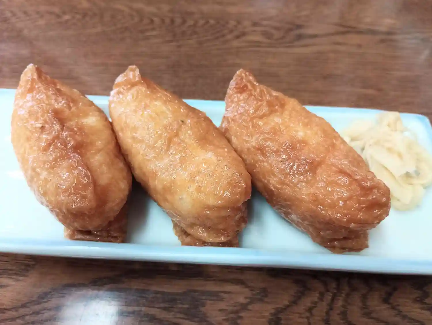 昼食のサイドメニューに“いなり寿司”を食べました。